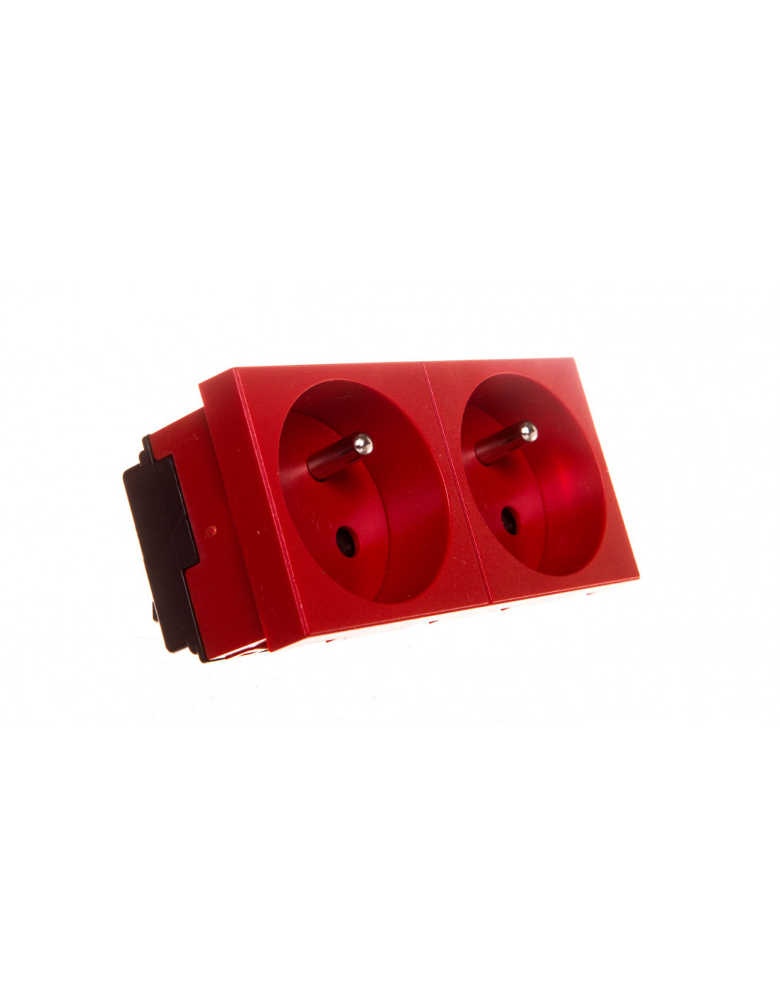 Gniazdo jest modelem podwójnym. Każda z jednostek została wyposażona w bolce uziemiający. Warto znać parametry elektryczne, przy jakich może pracować to gniazdo. Działa ono bowiem przy napięciu znamionowym o wartości 250 V, a z kolei wartość prądu znamionowego jest równa 16 A. Ten model jest dostępny w wyrazistym, czerwonym kolorze.