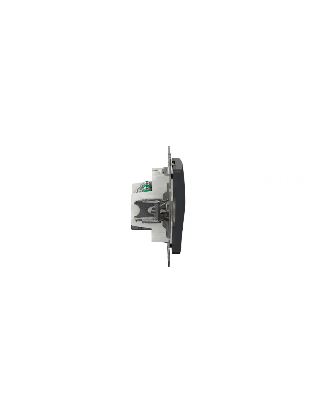 Układ zacisków gniazda w jednej linii ułatwia ułożenie przewodów w puszce (zmniejszenie efektu prężenia przewodów).