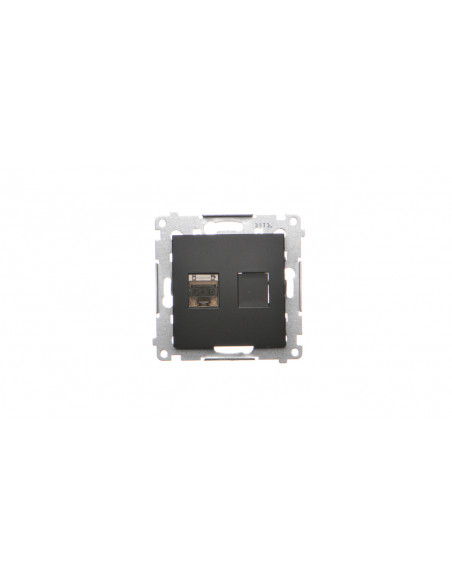 Simon 54 Gniazdo komputerowe pojedyncze RJ45 kategoria 6 ekranowane z przesłoną przeciwkurzową (moduł) czarny mat D61E.01/49