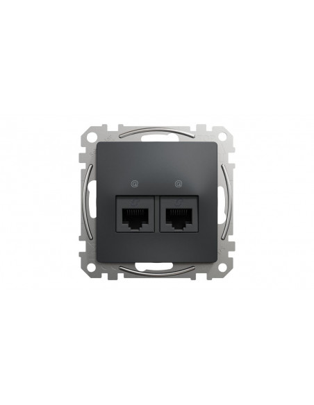 Schneider Electric, Sedna Design & Elements, Gniazdo komputerowe podwójne RJ45 kat. 6 UTP, czarny antracyt, SDD114462 SDD114462