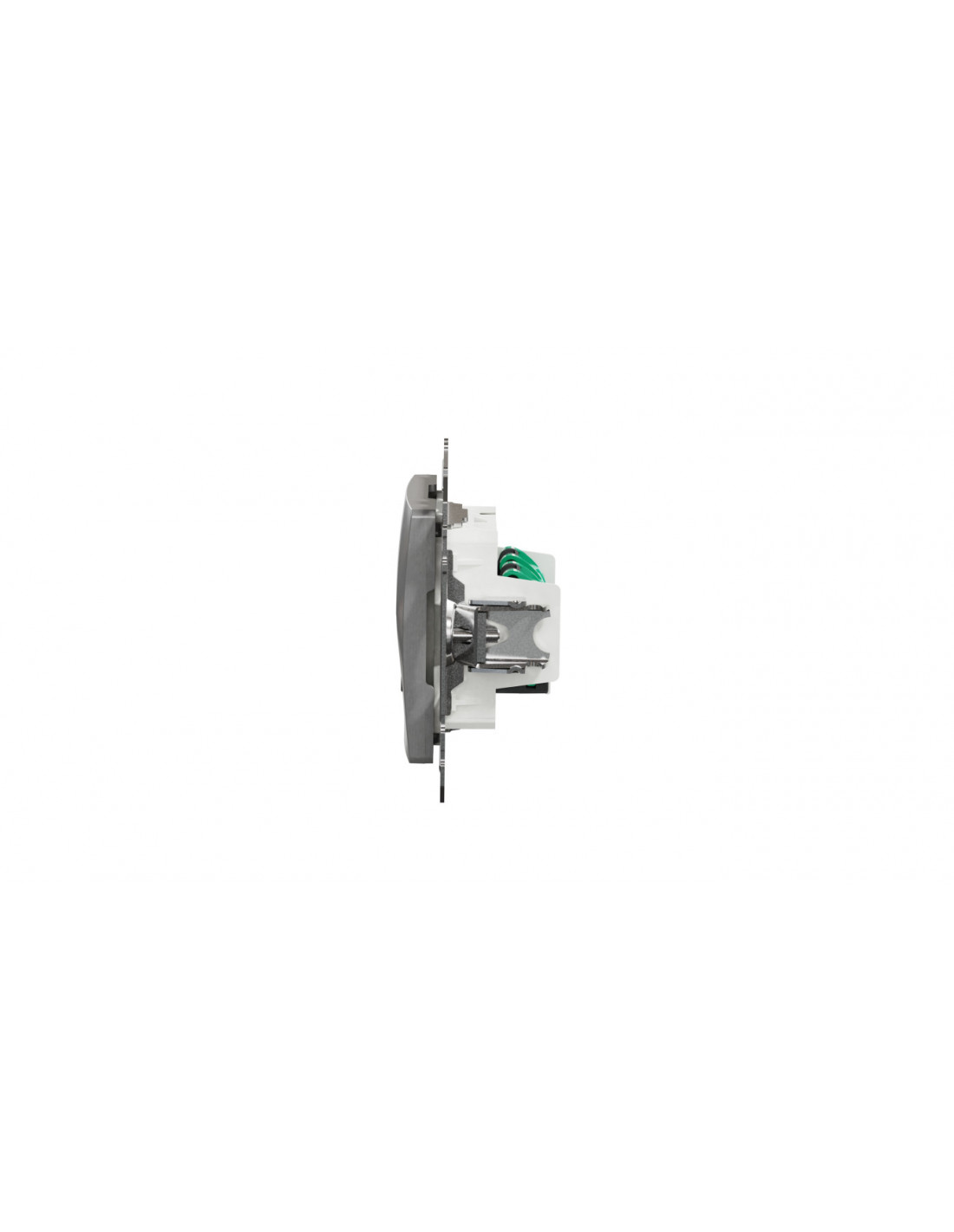 Układ zacisków gniazda w jednej linii ułatwia ułożenie przewodów w puszce (zmniejszenie efektu prężenia przewodów).