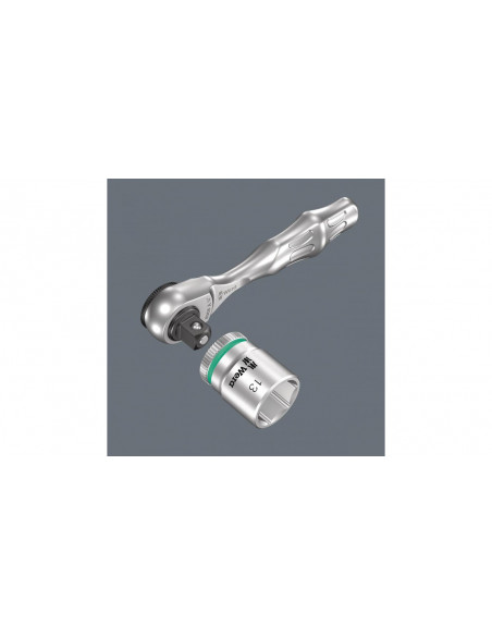 Grzechotka Wera Zyklop Mini 3 do nasadek "¼". Prosta obsługa nawet jedną ręką do prac w miejscach trudno dostępnych. Wykonana ze stali kutej matrycowo. Drobna podziałka z 60 zębami i małym kątem pracy wynoszącym 6° do prac precyzyjnych. Obrotowy, radełkowany pierścień pozwala na sprawną pracę. Łatwe przełączanie kierunku prawo-lewo. Ergonomiczna konstrukcja główki i przełącznika.