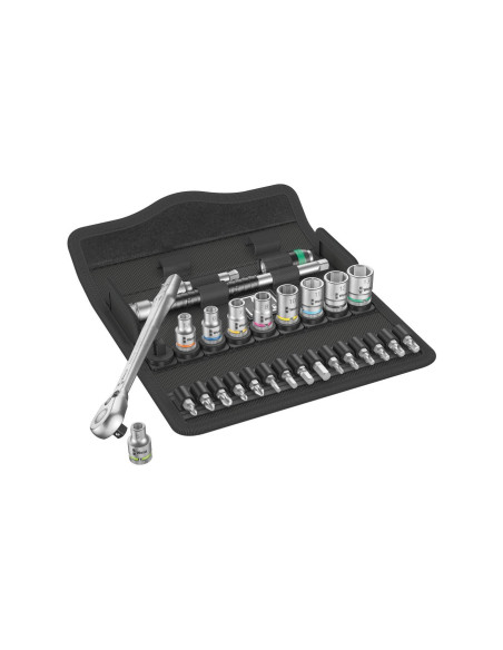 Niezwykle kompaktowe rozmieszczenie narzędzi na niewielkiej powierzchni. Zupełnie nowy zestaw w bardzo wytrzymałym i trwałym etui tekstylnym. Możliwość ustawienia w pozycji pionowej pozwalające na przejrzyste przechowywania na półce warsztatowej. Tkanina tekstylna na stronie zewnętrznej chroni powierzchnie narażone na zarysowania. Małe rozmiary i niewielka waga zapewniają dużą mobilność. Z systemem wyszukiwania narzędzi "Take it easy": oznaczenie kolorystyczne rozmiaru.