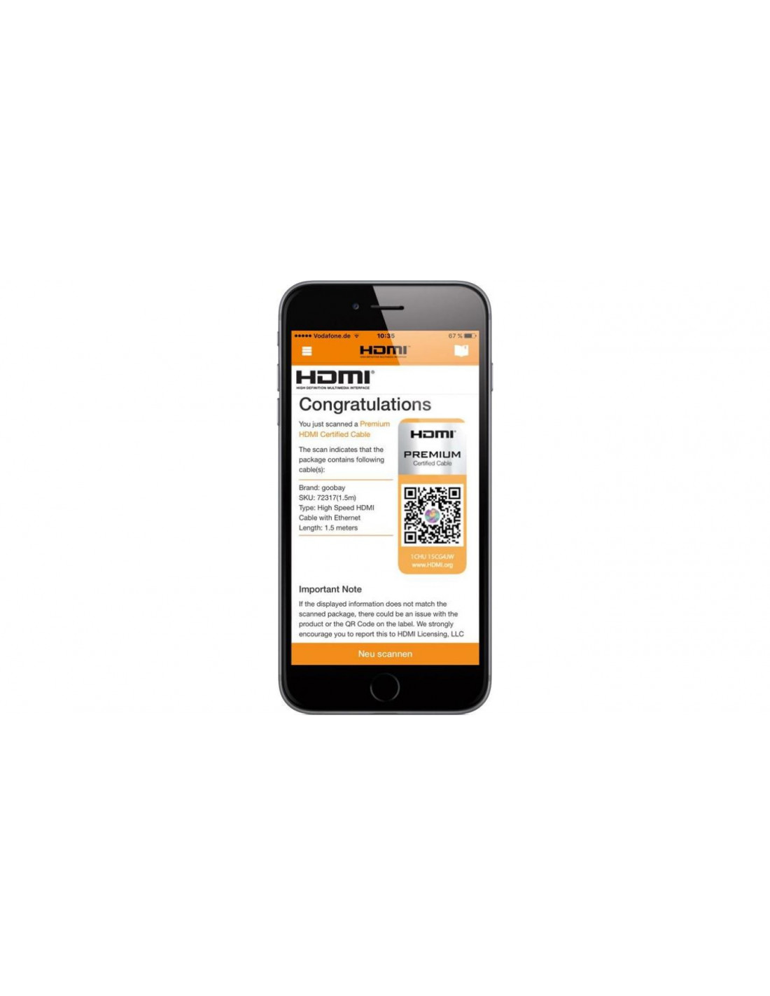 Oficjalnie certyfikowany kabel High Speed HDMI™ przez program Premium HDMI™ Cable.