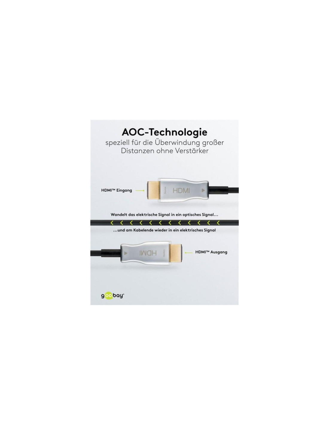 Optyczny kabel HDMI™ jest idealny do mostkowania odległości do 100 m, a tym samym oferuje znacznie większą elastyczność i wyższe prędkości transmisji niż konwencjonalny kabel miedziany.