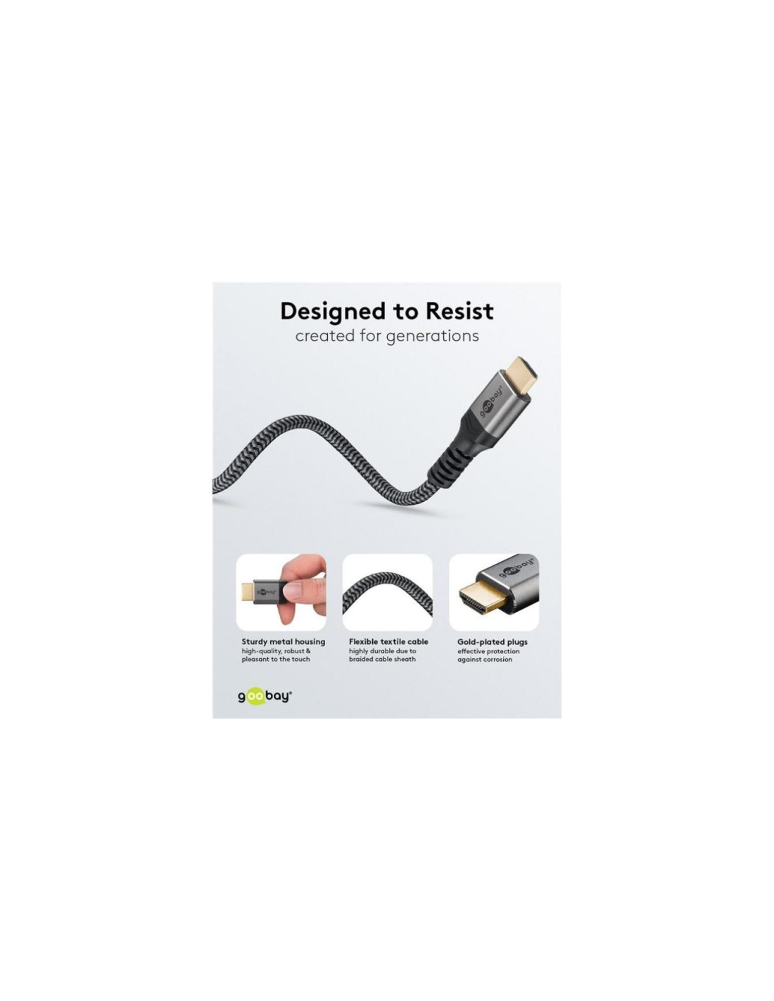 Seria Goobay Plus z wtyczkami w smukłej, eleganckiej metalowej obudowie w kolorze Sharkskin Grey. Najnowocześniejszy kabel HDMI™ osiąga najwyższe wartości pod względem rozdzielczości i szybkości transmisji, a także jest optymalnie dostosowany do wymagających funkcji, takich jak ARC, HDR i treści 3D.