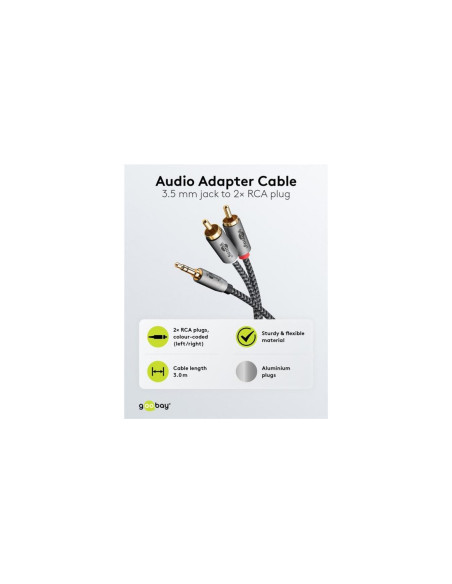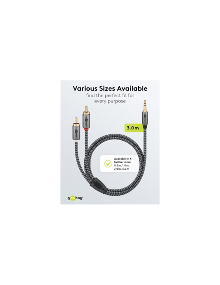 Seria Goobay Plus z wtyczkami w smukłej, eleganckiej metalowej obudowie w kolorze Sharkskin Grey. Kabel RCA to proste rozwiązanie do przesyłania krystalicznie czystego dźwięku ze smartfonów, laptopów lub systemów kina domowego - do wygodnego oglądania filmów i słuchania muzyki w najwyższej jakości.