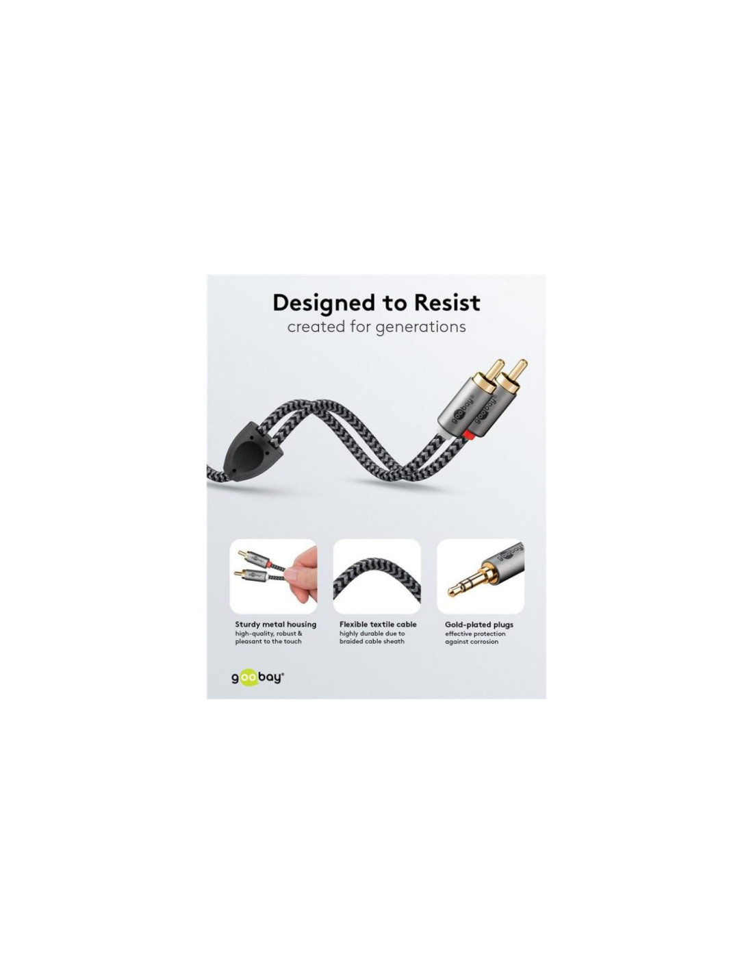 Seria Goobay Plus z wtyczkami w smukłej, eleganckiej metalowej obudowie w kolorze Sharkskin Grey. Kabel RCA to proste rozwiązanie do przesyłania krystalicznie czystego dźwięku ze smartfonów, laptopów lub systemów kina domowego - do wygodnego oglądania filmów i słuchania muzyki w najwyższej jakości.