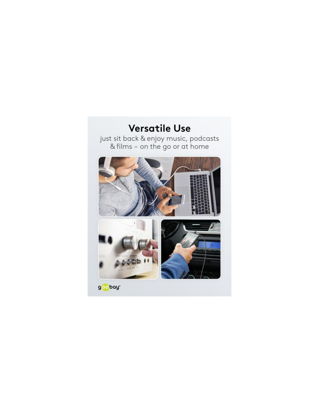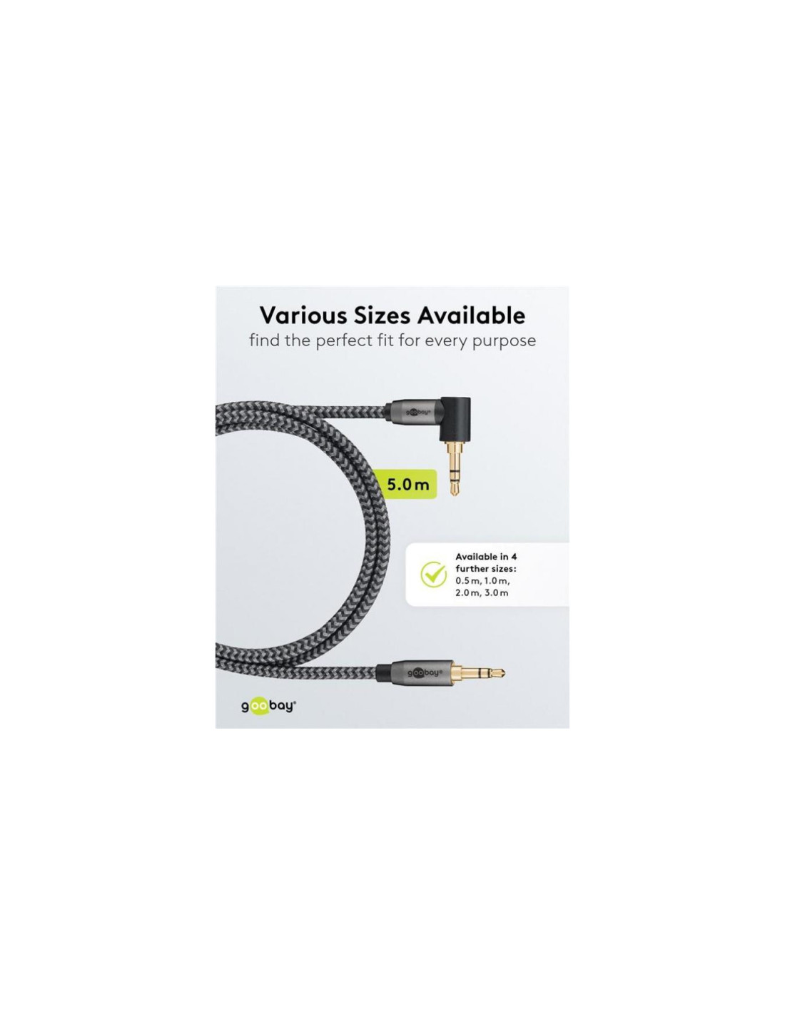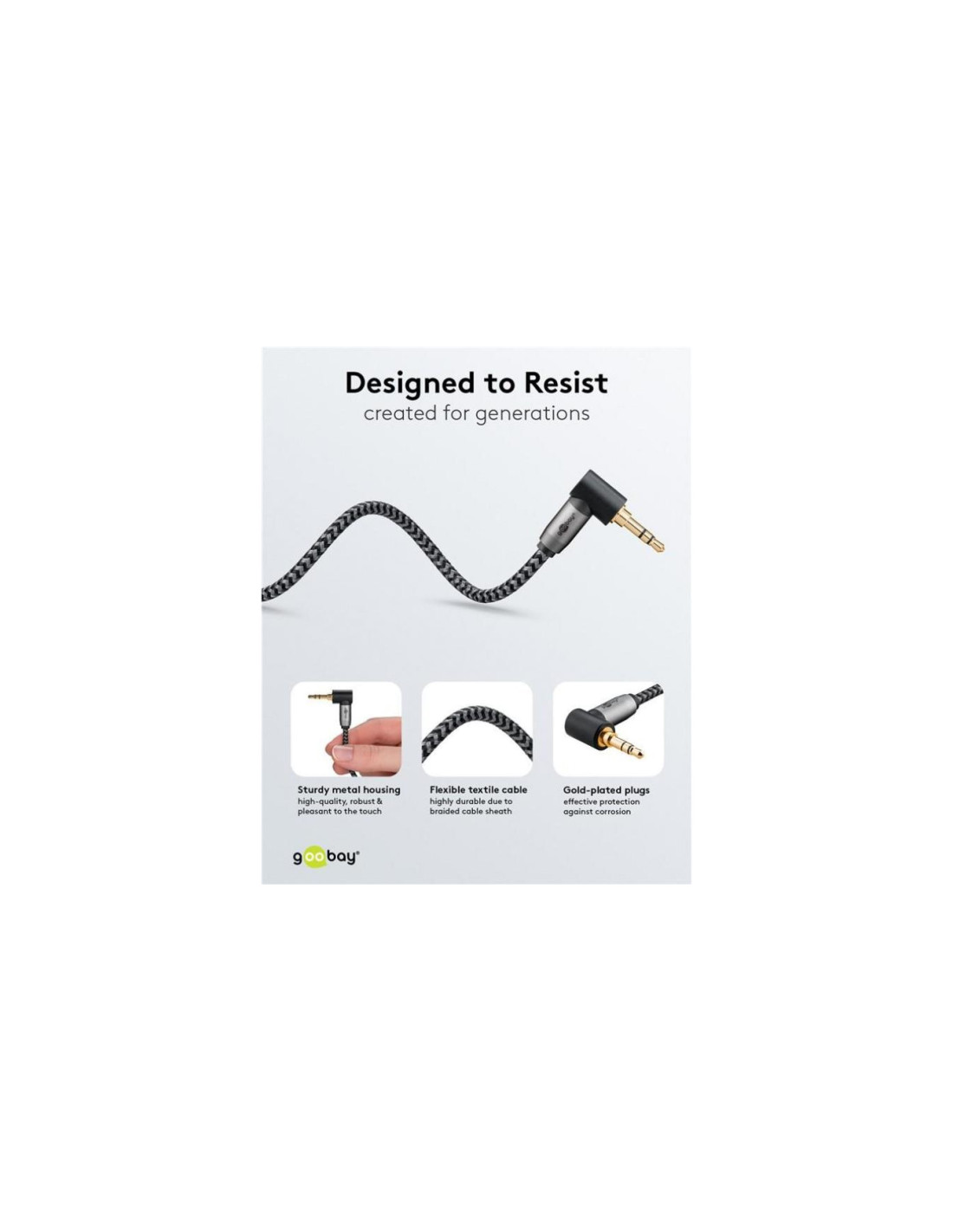 Seria Goobay Plus z wtyczkami w smukłej, eleganckiej metalowej obudowie w kolorze Sharkskin Grey. Kabel jack to uniwersalne rozwiązanie do przesyłania dźwięku ze smartfonów, laptopów lub tabletów - do wygodnego słuchania muzyki, podcastów lub filmów za pośrednictwem systemu hi-fi w domu lub radia samochodowego w drodze.