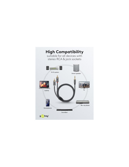 Seria Goobay Plus z wtyczkami w smukłej, eleganckiej metalowej obudowie w kolorze Sharkskin Grey. Kabel RCA to proste rozwiązanie do przesyłania krystalicznie czystego dźwięku ze smartfonów, laptopów lub systemów kina domowego - do wygodnego oglądania filmów i słuchania muzyki w najwyższej jakości.