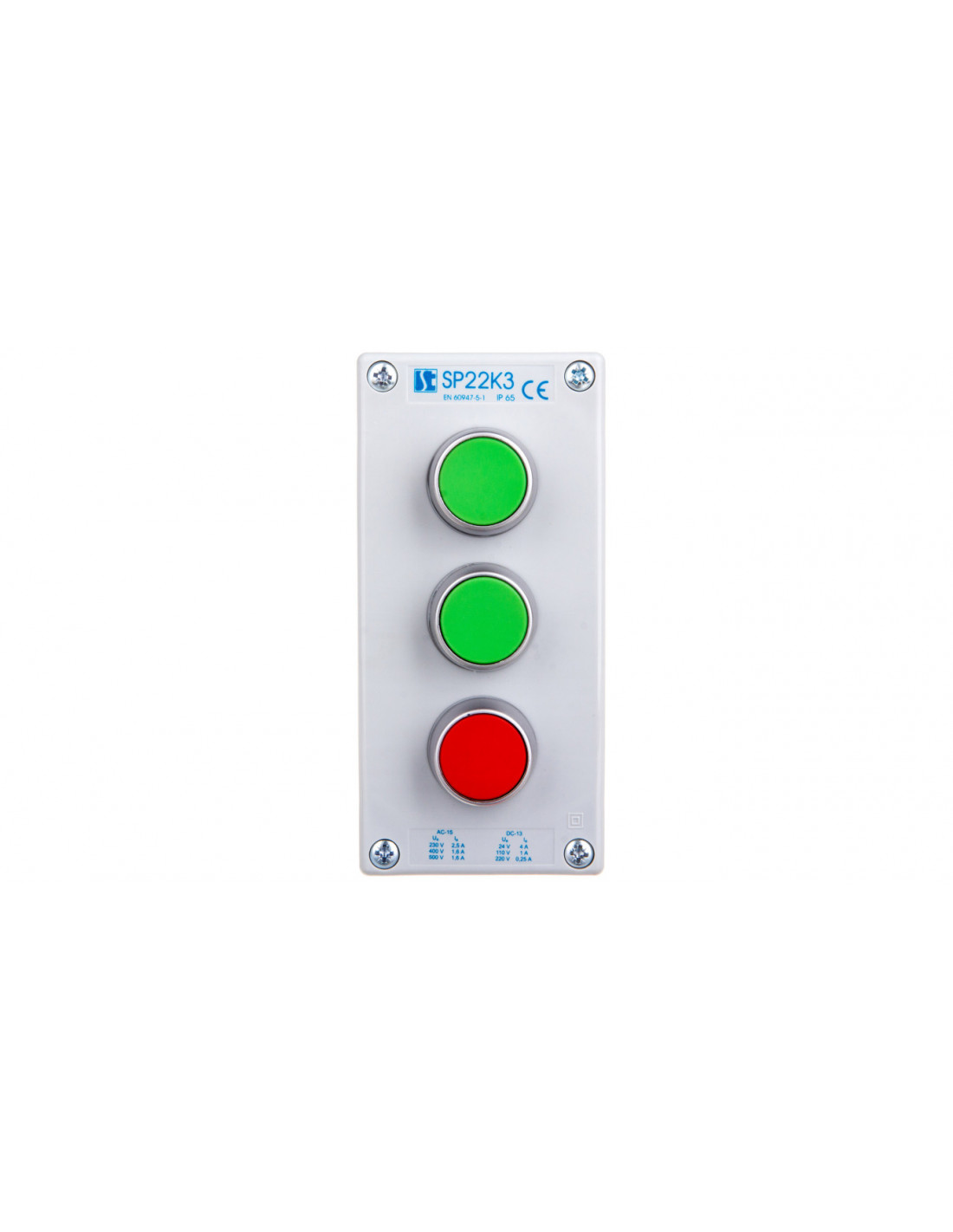 Kaseta sterownicza 3-otworowa 2xzielony/czerwony 2Z 1R IP65 1x dławnica M20 szara ST22K31-1