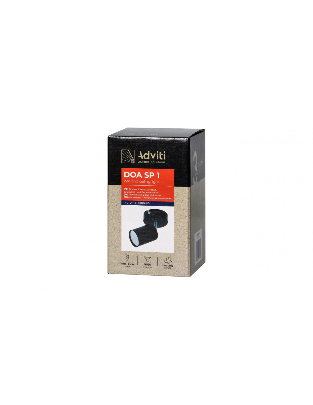 DOA SP 1, oprawa ścienno-sufitowa, GU10 max. 50W, IP20, czarna,AD-OP-6193BGU10