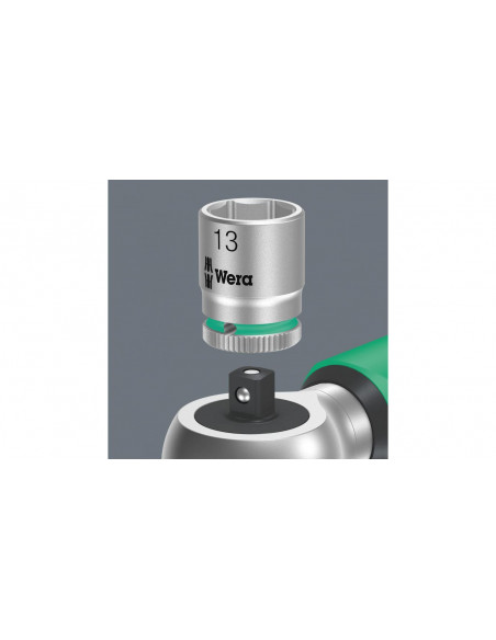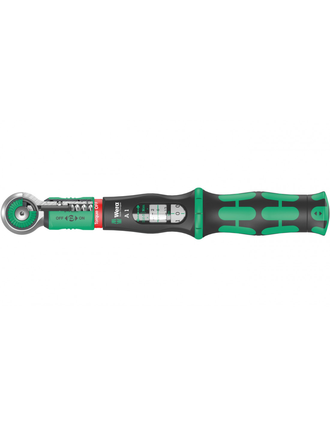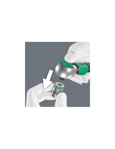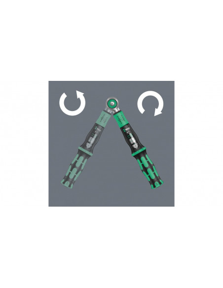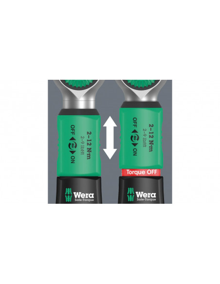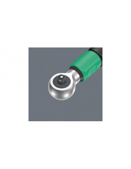 Klucz dynamometryczny z mechanizmem poślizgowym. Po osiągnięciu ustawionego momentu obrotowego mechanizm poślizgowy blokuje narzędzie zapobiegając niepożądanemu przekroczeniu ustawionego momentu obrotowego. Zakres regulacji od 2 do 12 Nm dla kontrolowanego dokręcania w prawo i w lewo. Łatwe ustawianie i zabezpieczanie wartości zadanej: słyszalne i wyczuwalne zablokowanie po osiągnięciu wartości skali ułatwia również niezawodne ustawienie żądanego momentu obrotowego. Z funkcją Torque Lock umożliwiającą stosowanie jako standardowa grzechotka bez momentu obrotowego. Maks. moment obrotowy zrywający kwadratu ¼" zgodnie z normą DIN 3122. Kąt powrotu zapadki wynosi zaledwie 5°, dzięki czemu grzechotka może być używana również w wąskich przestrzeniach. Klucz może być stosowany również do prac wymagających obrotu klucza pod kątem.