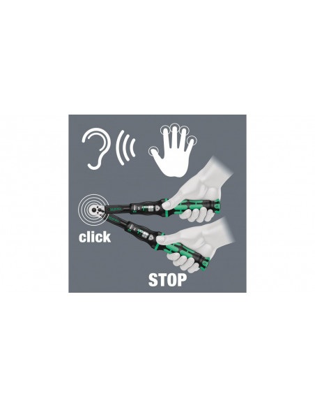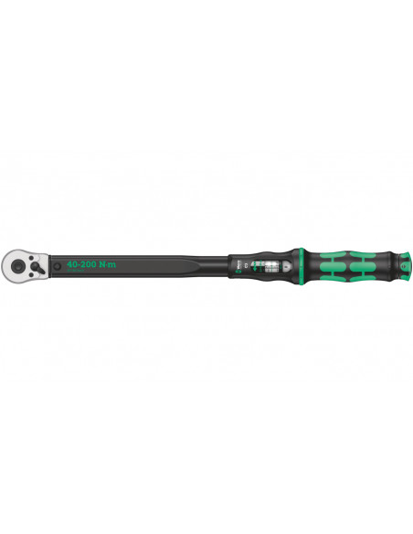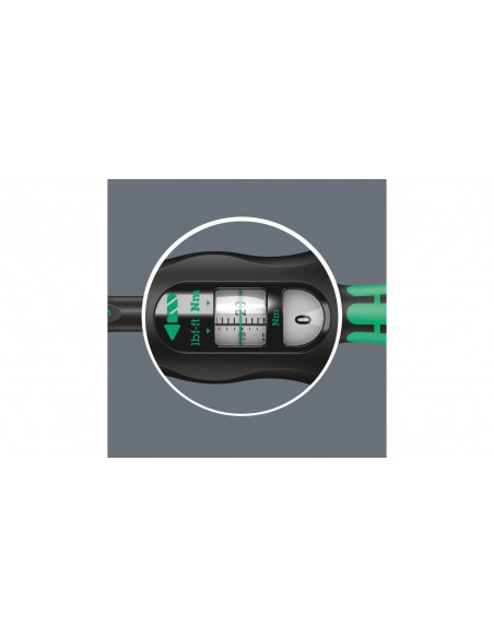 Klucz dynamometryczny w niepowtarzalnym designie firmy Wera. Bardzo wytrzymałe wykonanie i wysoka dokładność zgodnie z normą DIN EN ISO 6789-1:2017-07. Łatwe ustawienie i zabezpieczenie wartości domyślnej. Słyszalne i wyczuwalne zablokowanie po osiągnięciu wartości skali ułatwia również pewne ustawienie żądanego momentu obrotowego. Wytrzymały mechanizm wyzwalający uruchamia wyraźnie słyszalny i wyczuwalny sygnał po osiągnięciu ustawionego momentu obrotowego. Do dokręcania w prawo, z grzechotką z 45 zębami.