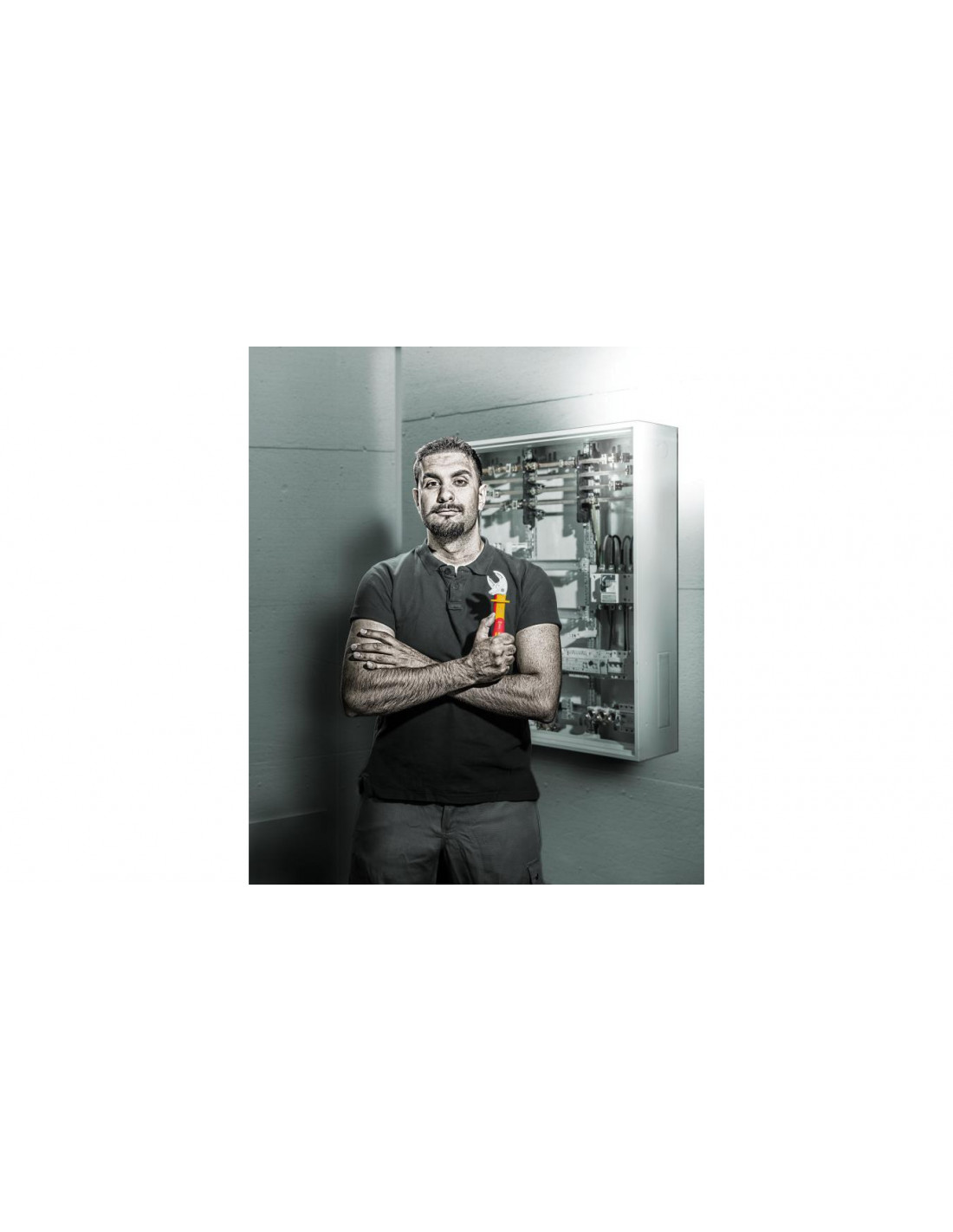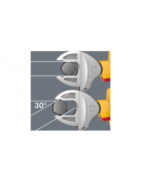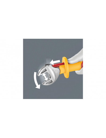 Narzędzia przetestowane indywidualnie zgodnie z IEC 60900 przy napięciu 10 000 V zapewniają bezpieczną pracę pod napięciem 1 000 V. Samonastawny klucz płaski VDE automatycznie i bezstopniowo chwyta wszystkie rozmiary sześciokątne w określonym zakresie wymiarów metrycznych i calowych. Zintegrowany mechanizm dźwigni bezpiecznie zaciska śrubę sześciokątną lub nakrętkę pomiędzy szczękami, co znacznie zmniejsza ryzyko ześlizgnięcia i uszkodzenia. Mechanizm zapadkowy zapewnia szybkie i płynne dokręcanie bez zdejmowania narzędzia. Zastosowanie pryzm w szczękach pozwala na przesuwanie klucza co 30°. Konstrukcja jednoramienna w połączeniu z mechanizmem zapadkowym i pryzmami umożliwia pracę nawet w wąskich przestrzeniach. Samonastawny klucz płaski Joker 6004 VDE ma przyjemną w dotyku rękojeść dzięki dwukomponentowej izolacji z tworzywa sztucznego. Bezpieczeństwo pracy zwiększa zabezpieczenie przed ześlizgnięciem z przodu rękojeści. Dodatkową ochronę zapewnia funkcja rozsuwania, która umożliwia bezdotykowe i bezpieczne otwieranie nieizolowanych szczęk.