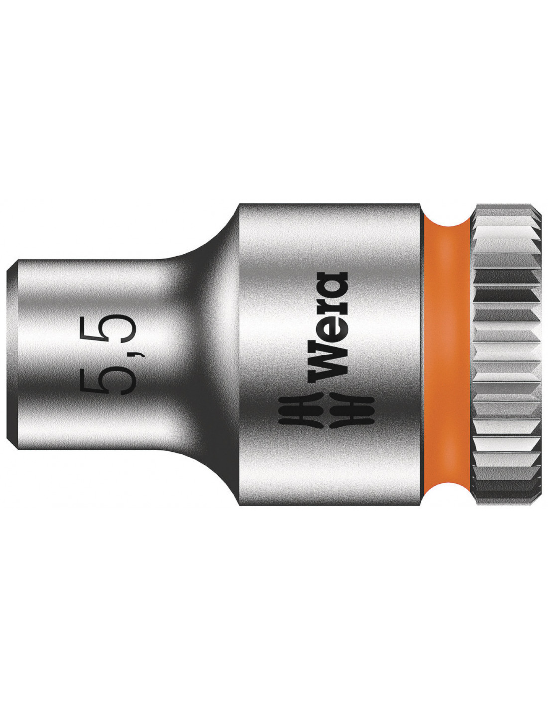Klucz nasadowy firmy Wera (ISO 2725-część 3) do stosowania ręcznego oraz maszynowego. System oznaczenia kolorystycznego kluczy według rozmiaru "Take it easy" ułatwiający i przyspieszający odnajdywanie właściwego narzędzia. Poręczny kształt umożliwiający chwytanie nawet zabrudzonymi smarem rękami. Z rowkiem ustalacza kulkowego. Do śrub i nakrętek z łbem sześciokątnym. Ze stali chromowo-wanadowej, chromowany matowo.