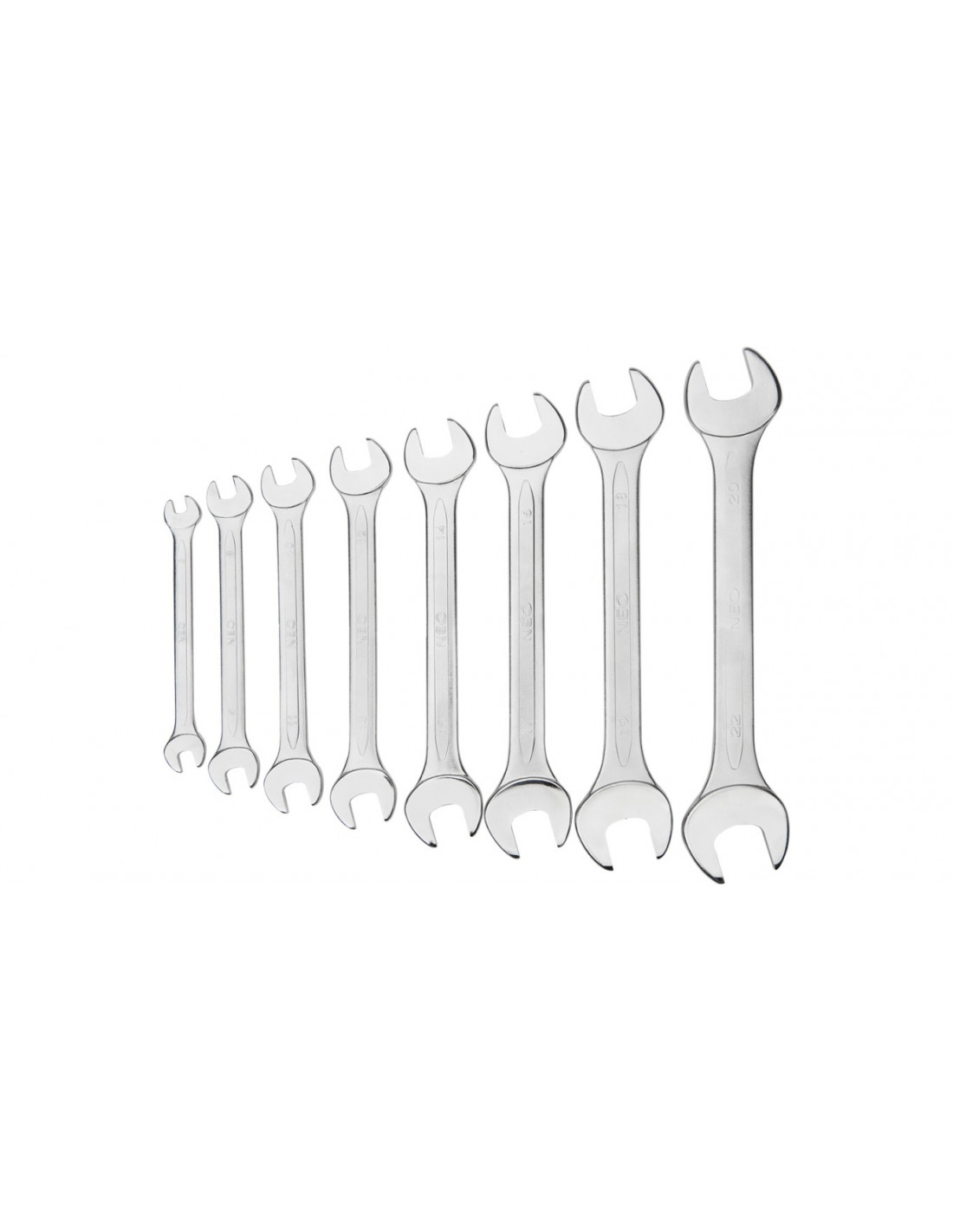 Zestaw kluczy płaskich dwustronnych NEO (nr ref. 09-851) zawiera 8 kluczy w popularnych rozmiarach (od 6 do 22 mm), wykonanych zgodnie z normą DIN 3110. Wysokogatunkowa stal chromowo-wanadowa zapewnia długoletnią wytrzymałość kluczy. Narzędzia dostarczane są w praktycznym etui z nadrukowanymi wymiarami kluczy, co ułatwia ich porządkowanie. Jakość narzędzia potwierdzona certyfikatem TUV i 25-letnią gwarancją producenta. Marka NEO spełnia oczekiwania profesjonalistów.