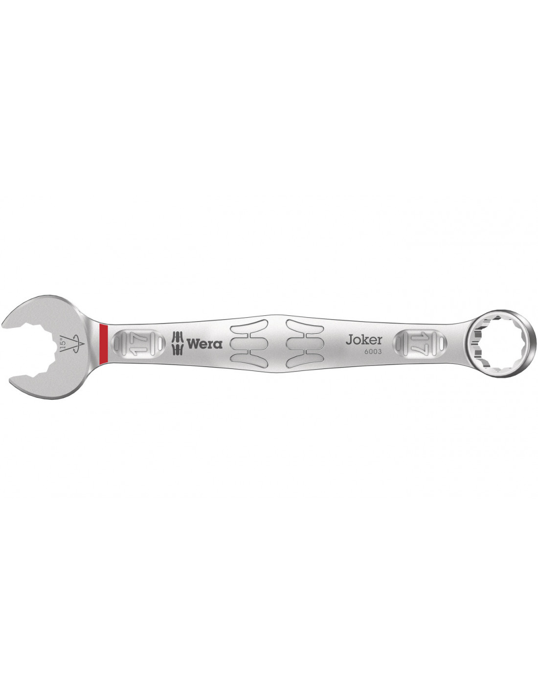 Ponieważ w swojej pracy użytkownicy coraz częściej spotykają się z sytuacjami, w których przestrzeń montażowa jest bardzo ograniczona, potrzebne są narzędzia, które umożliwią im wykonywanie zadań również w takich warunkach. Wąskie przestrzenie montażowe wymagają dodatkowych punktów przyłożenia dla narzędzi. Czy zatem klucze płaskie można modyfikować w taki sposób, aby zwiększyć możliwości osadzenia narzędzia? Połączenie szczęki odchylonej pod kątem 7,5° i geometrii podwójnego sześciokąta zwiększa dwukrotnie liczbę punktów przyłożenia. Podczas kilkukrotnie powtarzanych obrotów o 180° wokół osi wzdłużnej możliwe jest osadzenia klucza co 15° na nakrętce lub łbie śruby. Klucz Joker 6003 z przemyślaną geometrią szczęk znacznie rozszerza zakres zastosowań w ograniczonych przestrzeniach. Joker 6003 automatycznie odnajduje odpowiedni punkt przyłożenia po każdym obrocie. Smukła, a jednocześnie wytrzymała strona oczkowa klucza jest odchylona pod kątem 15° w stosunku do osi narzędzia. Wysokiej jakości powierzchnia zapewnia bardzo dobrą i długotrwałą ochronę antykorozyjną. Z systemem wyszukiwania narzędzi Wera "Take it easy": system oznaczenia kolorystycznego kluczy według rozmiaru.