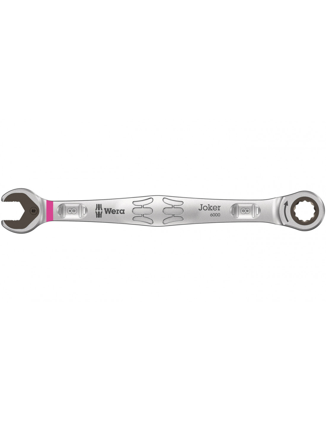 Wysokiej jakości metryczny klucz płasko-oczkowy z grzechotką firmy Wera: wszystko, co powinien zapewnić klucz. I jeszcze więcej. Szybciej, lepiej, bezpieczniej. Tak właśnie działa Joker. Nowa generacja kluczy płaskich z mechanizmem zapadkowym. Do śrub i nakrętek z łbem sześciokątnym. Funkcja przytrzymywania z metalową płytką zmniejszającą ryzyko zgubienia śruby lub nakrętki. Bardzo twarde ząbki wymiennej płytki pewnie chwytają śruby i nakrętki oraz zmniejszają ryzyko ześlizgiwania się klucza. Wbudowany ogranicznik zapobiega ześlizgiwaniu się klucza z łba śruby i umożliwia przenoszenie wysokich momentów obrotowych. Podwójny profil sześciokątny zapewnia doskonałe połączenie kształtowe między kluczem a śrubą bądź nakrętką, zmniejszając tym samym ryzyko ześlizgiwania. Przesuwanie klucza co 30° eliminuje czasochłonne obracanie klucza. Drobnozębny mechanizm zapadkowy z 80 zębami zapewnia maksymalną elastyczność nawet w wąskich przestrzeniach. Przenoszenie wysokich momentów obrotowych i podwyższona wytrzymałość na zginanie dzięki specjalnej geometrii. Wykonany z wysokiej jakości stali chromowo-molibdenowej z powłoką chromowo-niklową dla ochrony przed korozją. System wyszukiwania narzędzi Wera "Take it easy": system oznaczenia kolorystycznego kluczy według rozmiaru.
