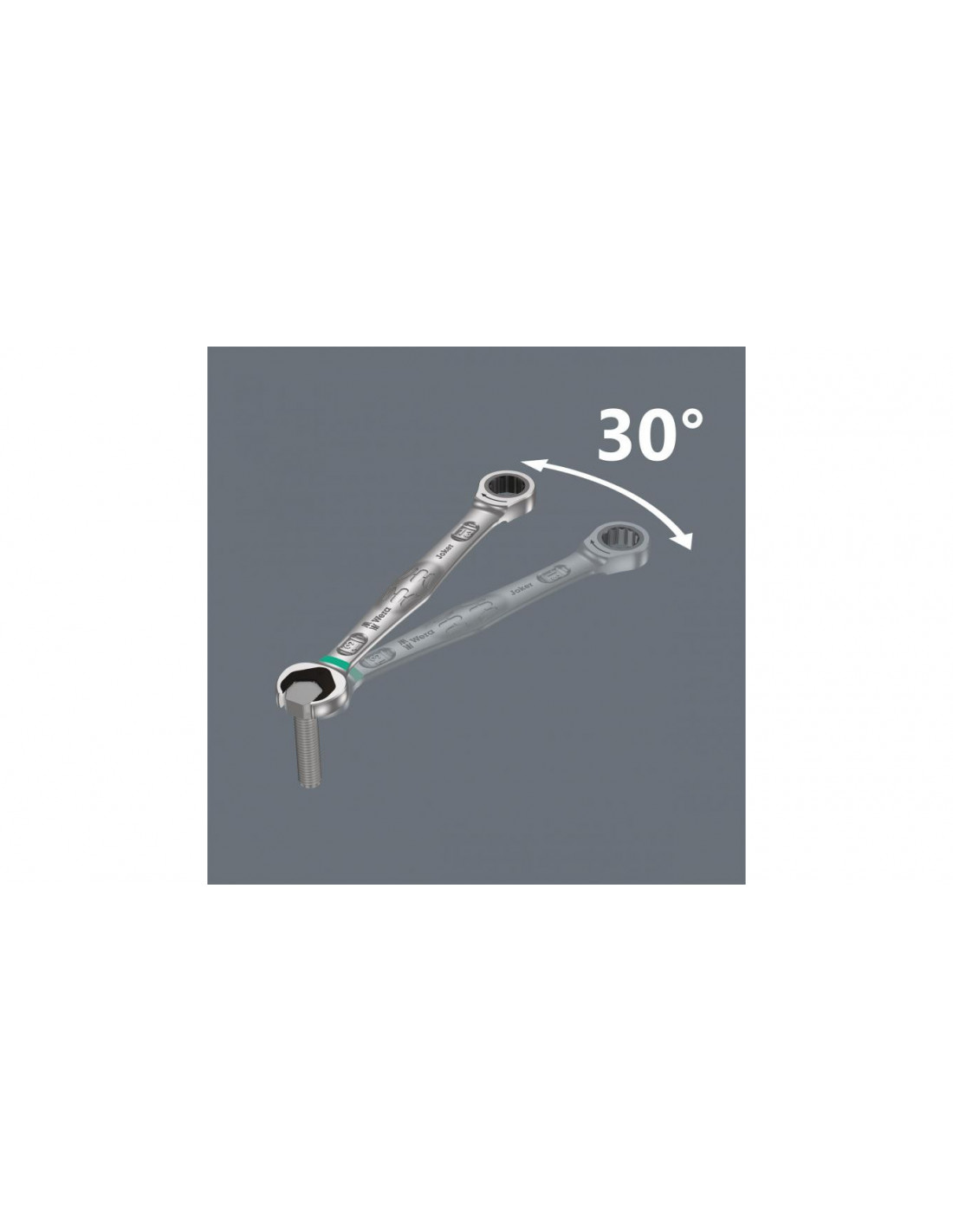 Zestaw wysokiej jakości kluczy płasko-oczkowych z grzechotką: wszystko, co powinien zapewnić klucz. I jeszcze więcej. Szybciej, lepiej, bezpieczniej. Tak właśnie działa Joker. Nowa generacja kluczy płasko-oczkowych z grzechotką. 4-częściowy zestaw w wytrzymałym etui. Do śrub i nakrętek z łbem sześciokątnym. Funkcja przytrzymywania z metalową płytką zmniejszającą ryzyko zgubienia śruby lub nakrętki. Bardzo twarde ząbki wymiennej płytki zabezpieczają śruby i nakrętki oraz zmniejszają ryzyko ześlizgiwania się klucza. Wbudowany ogranicznik zapobiega ześlizgiwaniu się klucza z łba śruby i umożliwia przenoszenie wysokich momentów obrotowych. Podwójny profil sześciokątny zapewnia doskonałe połączenie kształtowe między kluczem a śrubą bądź nakrętką, zmniejszając tym samym ryzyko ześlizgiwania. Kąt pracy 30° eliminuje czasochłonne obracanie klucza przy pokręcaniu. Niezwykle drobna podziałka z 80 zębami zapewnia maksymalną elastyczność nawet w wąskich przestrzeniach. Przenoszenie wysokich momentów obrotowych i podwyższona wytrzymałość na zginanie dzięki specjalnej geometrii. Wykonany z wysokiej jakości stali chromowo-molibdenowej z powłoką chromowo-niklową dla ochrony przed korozją. Z systemem wyszukiwania narzędzi "Take it easy": oznaczenie kolorystyczne rozmiaru.
