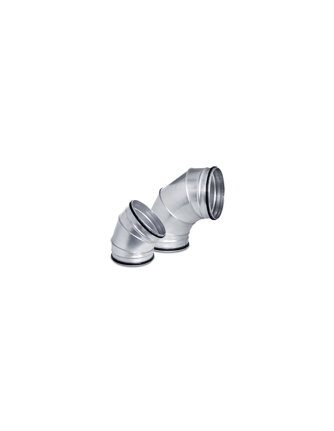 Segmentowe kolano wentylacyjne stosowane do kanałów SPIRAL i wentylacyjnych przewodów gładkich. Składa się z 4 segmentów a w przypadku średnic od 1120 z 5 segmentów zamykanych na zamek blacharski. Wewnątrz zamki są dodatkowo uszczelniane co w połączeniu z dwuwargową uszczelką z gumy EPDM zapewnia instalacji wentylacjii rekuperacji klasę szczelności D wg normy PN-EN 12237. Połączenie z przewodem wentylacyjnym następuje poprzez wsunięcie do środka kanału. Możliwe jest wykonanie ichz blachy kwasoodpornej 1.4404, 1.4404 dla wentylacyjnych instalacji basenowych.
