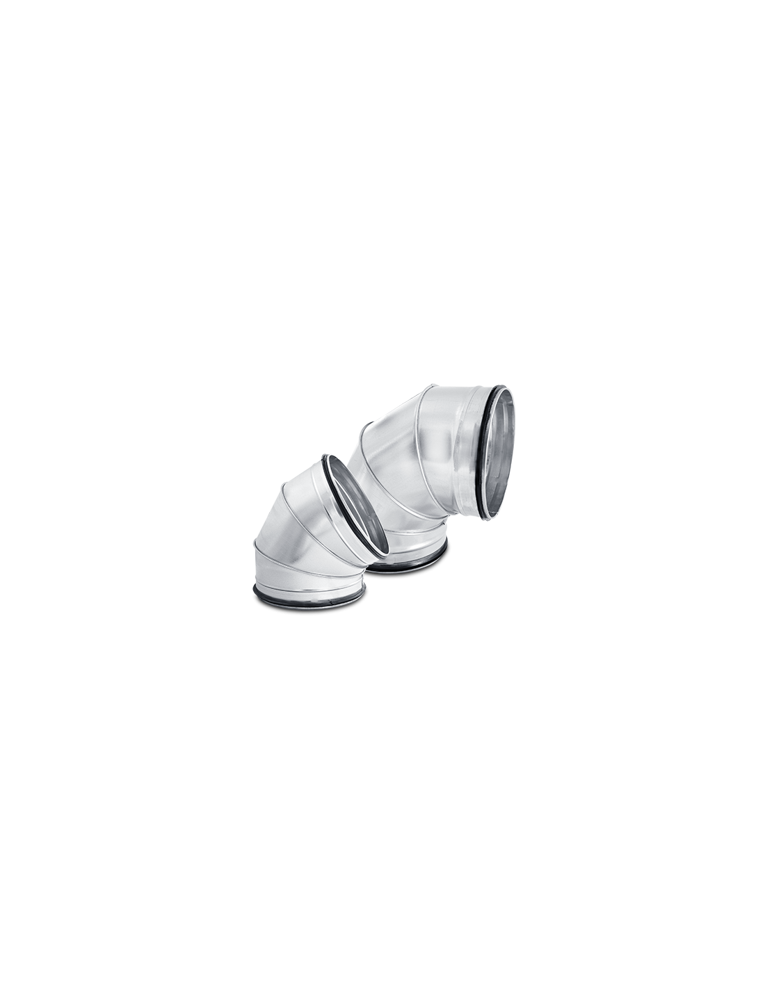 Segmentowe kolano stosowane do spiralnie zwijanych przewodów wentylacyjnych. Składa się z 4 segmentów,a w przypadku średnic od 1120 z 5 segmentów zamykanych na zamek blacharski. Wewnątrz zamki są dodatkowo uszczelniane co w połączeniu z dwuwargową uszczelkąz gumy EPDM zapewnia instalacji wentylacji i rekuperacji klasęszczelności D wg normy PN-EN 12237. Promień wynosi około 0,6 D dzięki czemu możliwe jest oszczędzenie przestrzeni miedzy stropowej oraz obniżenie ceny zakupu kolan segmentowych. Na zamówienie wykonywane jest kolano z jedną stroną mufową.