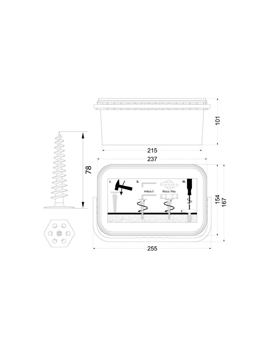 wcześniejsze wiercenie lub usuwanie tynku. Do zestawu dołączane są dwa dedykowane klucze, w miękkim podłożu do