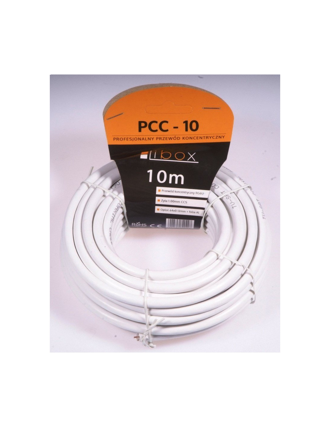 Żyła wewnętrzna - 0.8 +- 0.02mm, FeCu Dielektryk - 4.8 +- 0.02 mm spieniony fizycznie PE Ekran - folia Al. + polipropylen, grubość 0.04 Oplot - 48 żył x 0.12mm, drut Al Powłoka zewnętrzna - 6.8mm, biały PVC Impedancja charakterystyczna 75 +- 3 Ohm Pojemność jednostkowa: 52 +- 2 pF/m Współczynnik skuteczności ekranowania:>= 60 dB Długość: 10mKabel koncentryczny typu RG6 używany w profesjonalnych sieciach, rozprowadzający sygnał TV, również stosowany jako kabel antenowy dla systemów odbioru naziemnego i satelitarnego.Idealny do końcowych połączeń odbiorników telewizyjnych i satelitarnych.