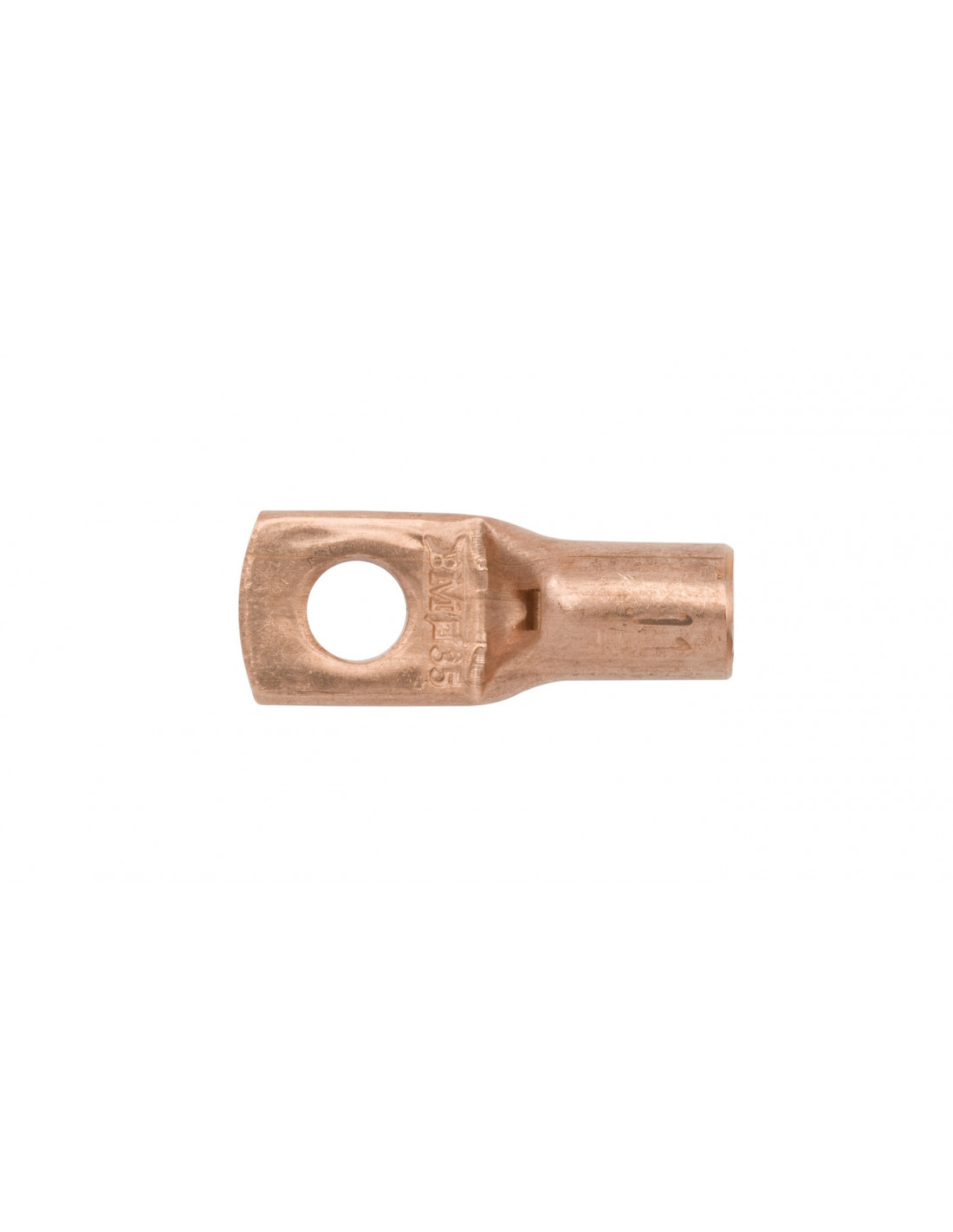 Końcówka oczkowa Cu 35/8 BM01737N znajduje zastosowanie podczas wykonywania połączeń przewodów i kabli z elementami instalacji elektrycznych, szczególnie w rozdzielnicach urządzeniach i maszynach elektrycznych. Montaż końcówki wymaga nasunięcia jej na zakończenie kabla, które wcześniej zostało pozbawione izolacji i zaciśnięcia całości za pomocą praski. Opisywany model został wykonany z miedzi, co gwarantuje znakomite parametry elektryczne i niezbędną wytrzymałość. Nasz sklep internetowy ma w swojej ofercie końcówki oczkowe Cu 35/8 BM01737N wyprodukowane przez firmę BM. Marka ta zapewnia najwyższą jakość produktu. Końcówki można używać wraz z przewodami o przekroju 35 mm2. Średnica otworu montażowego wynosi 8 mm. Końcówka oczkowa Cu 35/8 BM01737N sprzedawana jest na sztuki. Minimalne zamówienie internetowe to jedna sztuka.