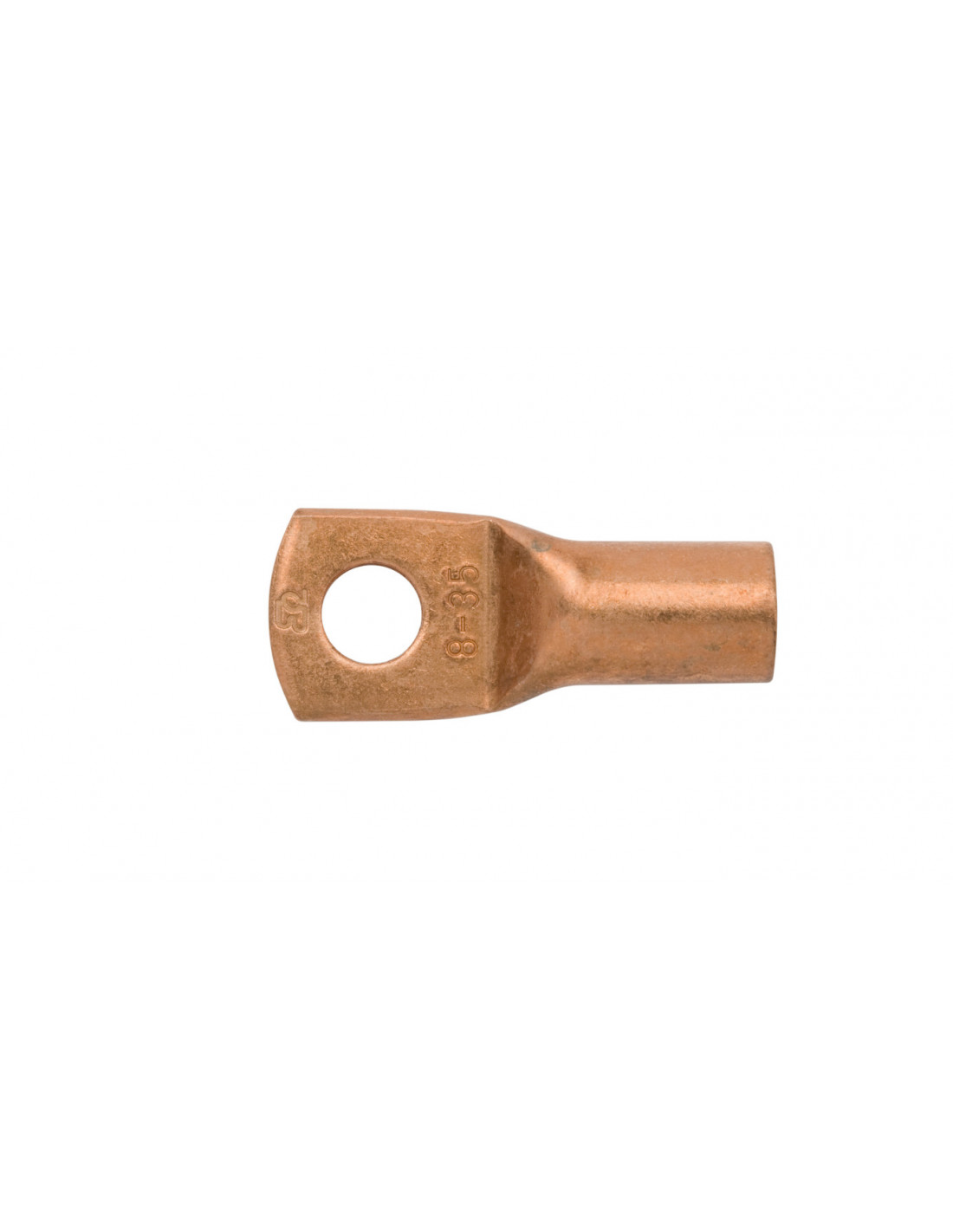Końcówka jest przeznaczona w tym przypadku do przewodów o przekroju 35 mm2, otwór montażowy w tym przypadku jest przygotowana na śrubę M8. Wykonane w ten sposób połączenie jest wyjątkowo trwałe i odporne.