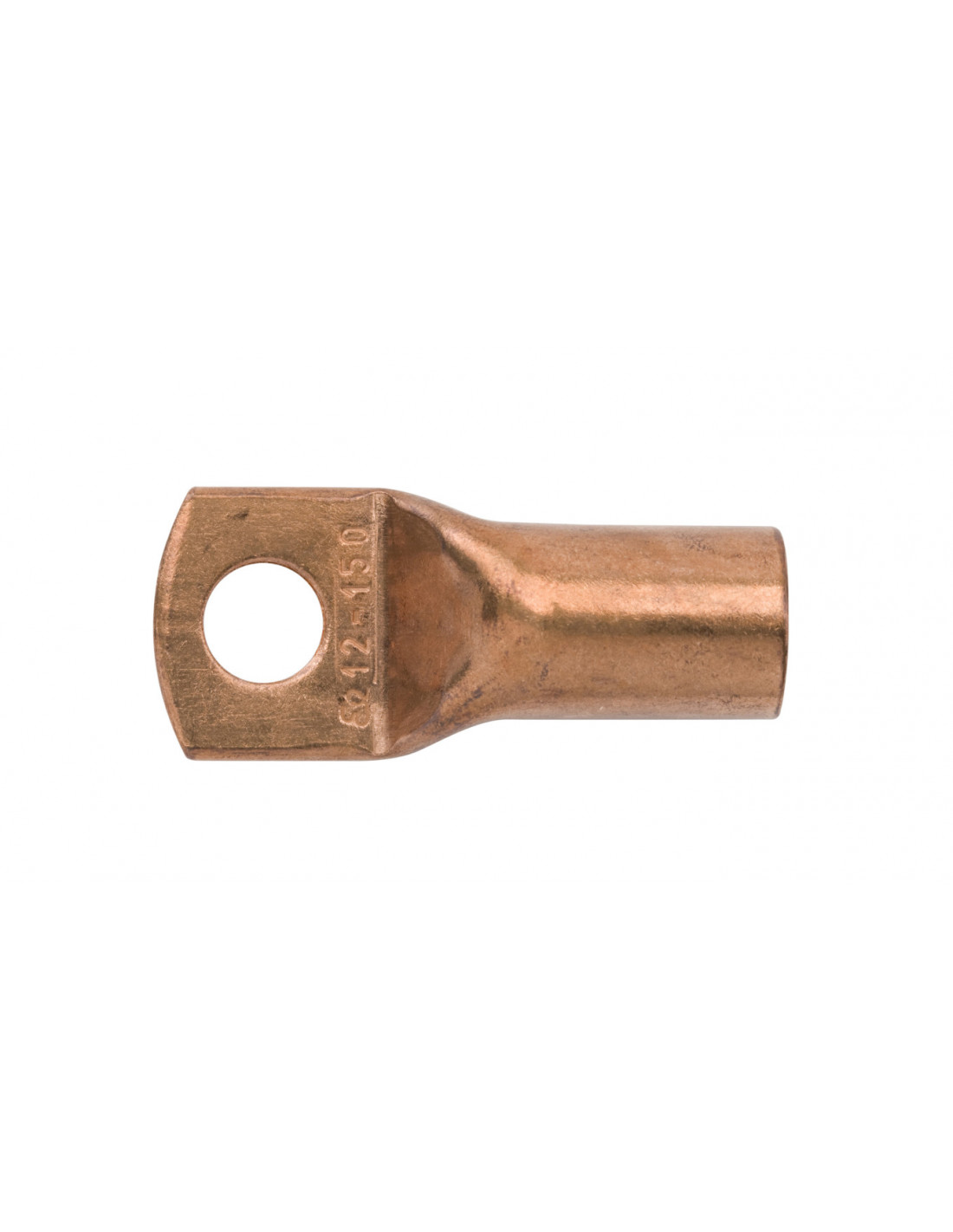 Końcówka posiada część rurową przeznaczoną na zamocowanie na przewodzie oraz część z otworem montażowym pod konkretną śrubę. W tym przypadku końcówka nadaje się do przewodu o przekroju 150 mm2, a otwór jest przygotowany na śrubę M12. Końcówka powstała z niecynowanej miedzi, aby ją właściwie zamocować na przewodzie należy ją zaprasować prasą zaciskową.