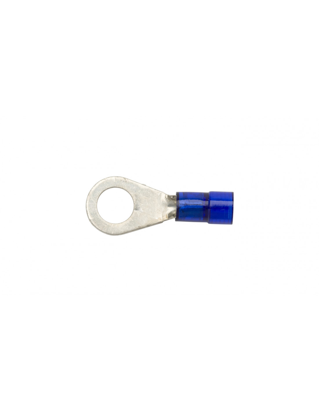 Końcówka oczkowa izolowana jest wykonana z miedzi pokrytej cyną. Jej część do wsuwania kabla została pokryta izolacją. Produkt służy do zakańczania przewodów o przekroju 1,5-2,5 mm2. Otwór montażowy został przygotowany na śrubę M6. Jakość połączenia zależy od właściwego doboru końcówki do kabla oraz śruby do końcówki