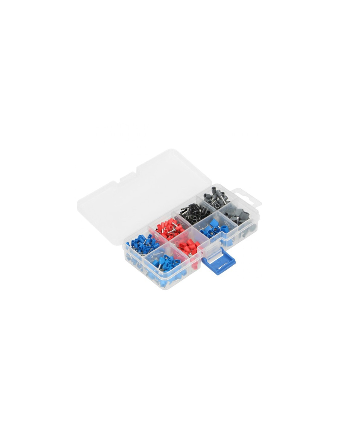 Zestaw tulejek izolowanych do zaciskania na końcach przewodów. Tulejki pozwalają na wykonanie estetycznego i pewnego zakończenia przewodu. Dzięki zastosowaniu tulejki możemy stosować przewód typu linka w szybkozłączkach wciskanych oraz poprawić jakość połączenia śrubowego. Zawiera 350 elementów - tulejki pojedyncze: 0,75mm x 2,10mm - 80 szt.; 1mm2 x 10mm: 70 szt.; 1,5mm2 x 10mm: 60 szt.; 2,5mm2 x 10mm: 50 szt. oraz tulejki podwójne: 0,75mm2 x 8mm: 30 szt.; 1mm2 x 10mm: 25 szt.; 1,5mm2 x 10mm: 20 szt.; 2,5mm2 x 10mm: 15 szt.