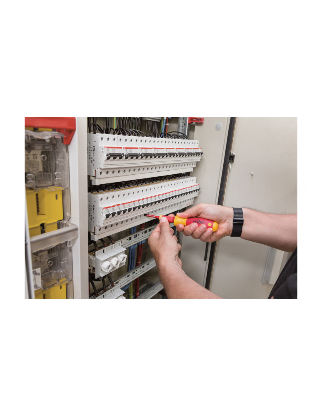 Nizsze koszty : Rozszerzenie w postaci narzedzi dynamometrycznych przeznaczonych do zestawu wkretaków LiftUp i slimVario®.Wlasciwy moment dokrecania chroni przed roszczeniami gwarancyjnymi. Wyzsza efektywnosc pracy : Wlasciwy moment dokrecania chroni przed uszkodzeniami materialu i kosztownymi poprawkami.100% kompatybilnosci z systemem Wiha slimBit. Pelna ochrona : Kazde narzedzie testowane pojedynczo napieciem 10 000 V AC i dopuszczone do uzycia pod napieciem 1000 V AC. Adapter easyTorque umozliwia kontrolowane dokrecanie srub, jak równiez zapewnia bezpieczenstwo podczas prac przy instalacjach elektrycznych. Stosowanie adaptera dynamometrycznego zapewnia bezpieczenstwo procesu technologicznego, a tym samym chroni material przed uszkodzeniem i dodatkowa obróbka wykanczajaca. Ponadto izolowany zestaw adapterów easyTorque posiada niezawodny uchwyt do bitów slimBit o wielkosci 75 mm i jest kompatybilny z wszystkimi produktami slimVario. Tym samym przy uzyciu tego porecznego adaptera mozna w jednej chwili przeksztalcic w narzedzie dynamometryczne zarówno srubokret slimVario z uchwytem na bity i wkretak slimVario Stubby electric, jak i srubokret LiftUp electric z magazynkiem bitów. Uzyskanie momentu dokrecania jest sygnalizowane przez slyszalne klikanie oraz wizualnie przez obrót zóltego pierscienia i czerwonego adaptera w przeciwna strone. Przy dokladnosci zadzialania +/- 10% to narzedzie dynamometryczne spelnia wymogi normy DIN EN ISO 6789. Zestaw adapterów easyTorque poddawany jest kontroli jednostkowej zgodnie z miedzynarodowa norma IEC 60900 i umozliwia bezpieczna prace przy czesciach znajdujacych sie pod napieciem do 1000 V AC. Normy : Produkowany zgodnie z IEC 60900. Zastosowanie : Sluzy on do kontrolowanego wykonywania polaczen srubowych w obszarze czesci znajdujacych sie pod napieciem do 1000 V AC, np. bezpieczników samoczynnych.