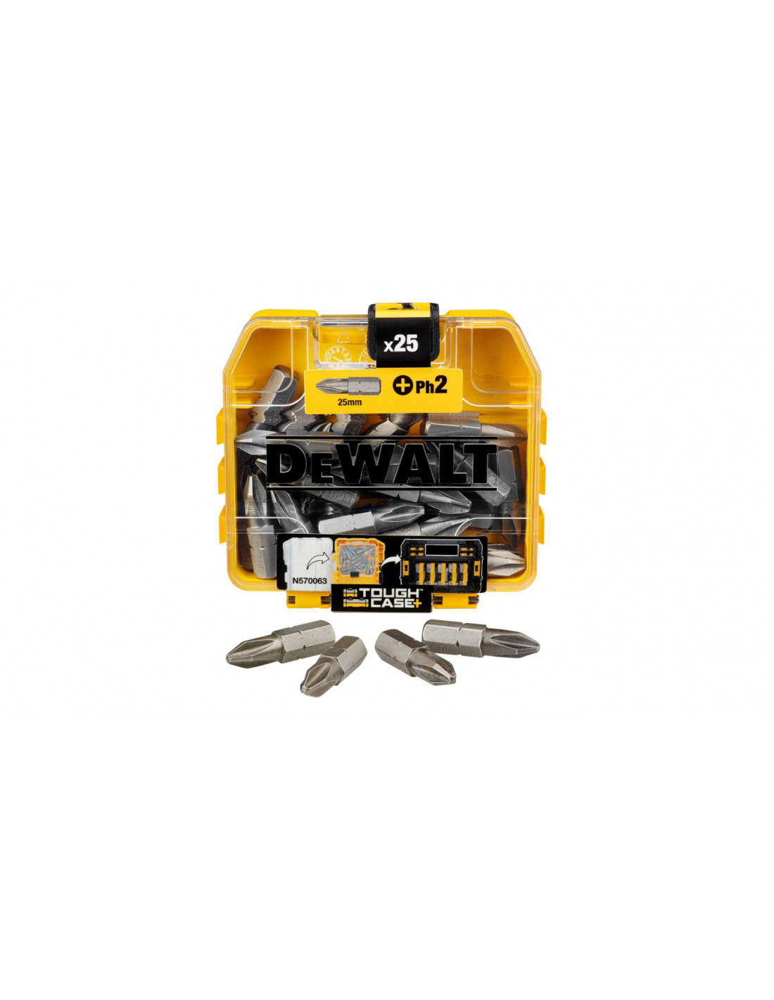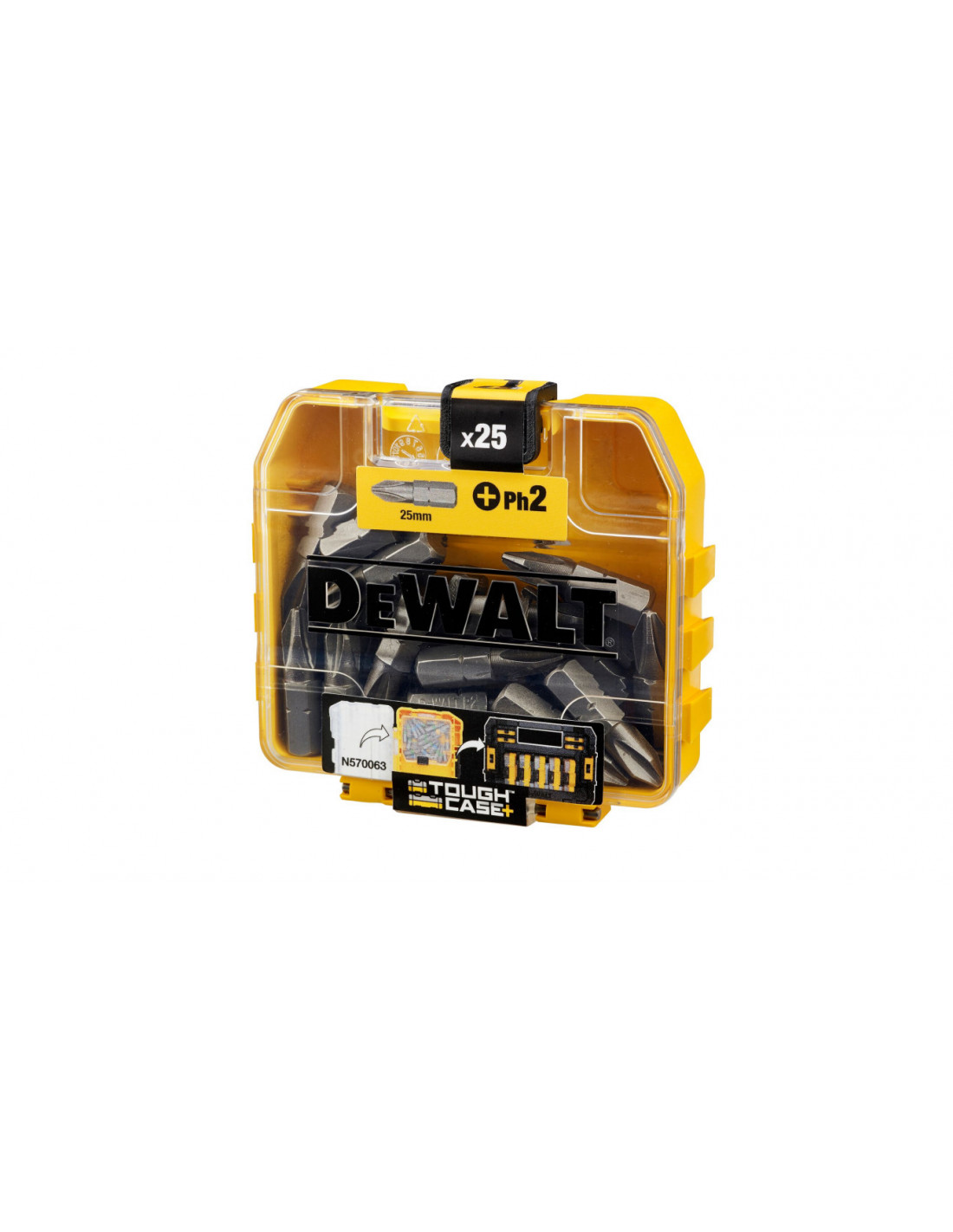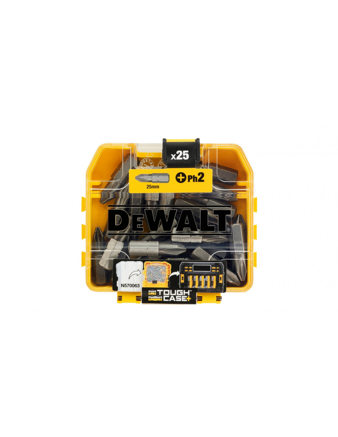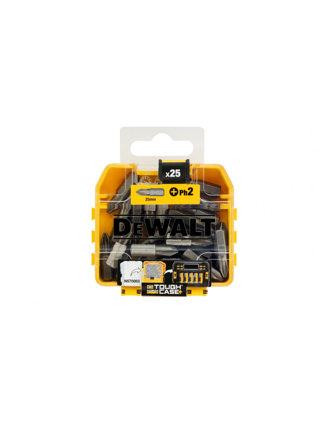 Wszystkie elementy zestawu są zapakowane w mocnym opakowaniu z tworzywa "Small Bulk Storage", który wchodzi w skład nowego systemu magazynowania akcesoriów "ToughCase+" Dewalt
