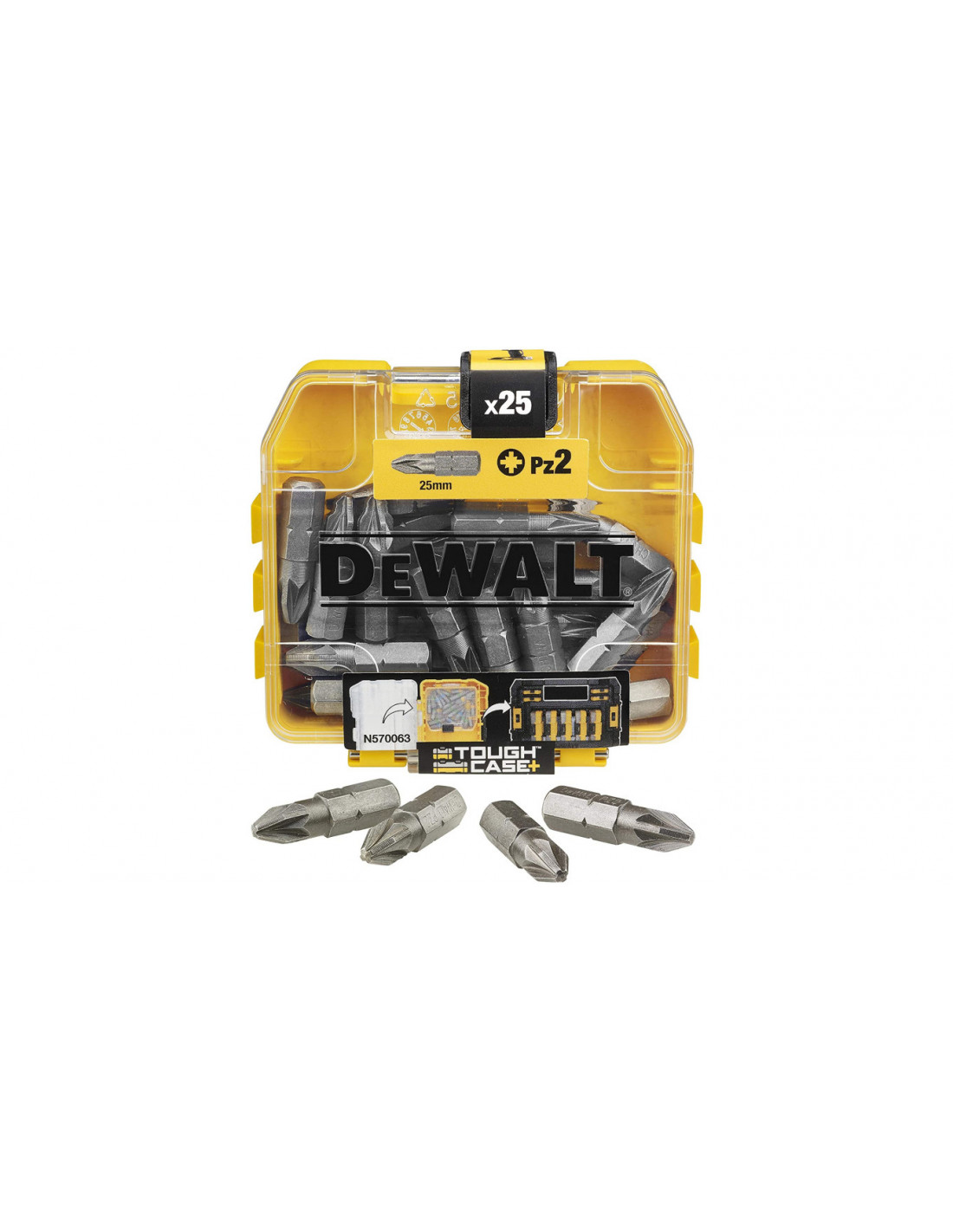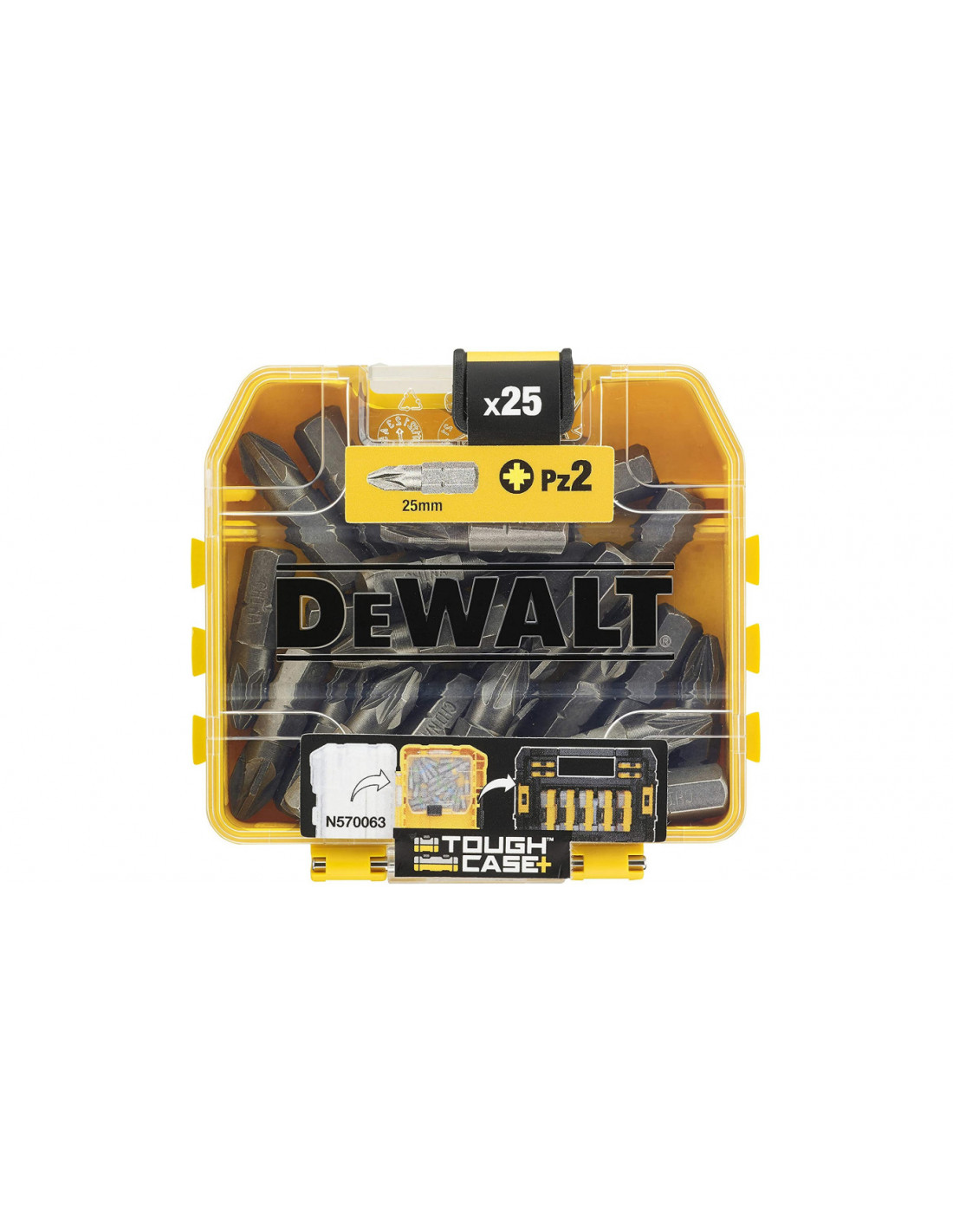 Wszystkie elementy zestawu są zapakowane w mocnym opakowaniu z tworzywa "Small Bulk Storage", który wchodzi w skład nowego systemu magazynowania akcesoriów "ToughCase+" Dewalt
