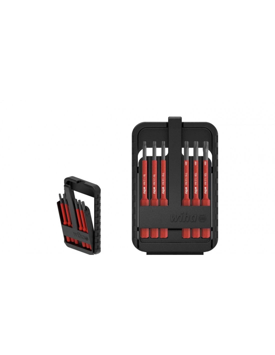 W konwencjonalnych wkrętakach dla elektryków, średnica trzonka jest często zbyt duża, aby dotrzeć do głęboko położonych śrub. Usuwanie izolacji z wkrętaka jest jednak zabronione i zagraża Twojemu bezpieczeństwu. Wkrętaki przeznaczone specjalnie dla elektryków, wykonane w technologii slimTECHNOLOGY opracowanej przez firmę Wiha, posiadają izolację ochronną zintegrowaną z trzonkiem, którego grubość jest zredukowana o 33%. Dzięki bitom slimBit mamy łatwy dostęp do głęboko położonych elementów śrubowych i sprężynowych. Izolowane bity slimBit poddawane są kontroli jednostkowej zgodnie z międzynarodową normą IEC 60900 i umożliwiają bezpieczną pracę w obszarze elementów znajdujących się pod napięciem do 1000 V AC. Co więcej bity slimBit są schowane w inteligentnej kasecie na bity, która zapewnia optymalny wgląd w profile śrubowe.