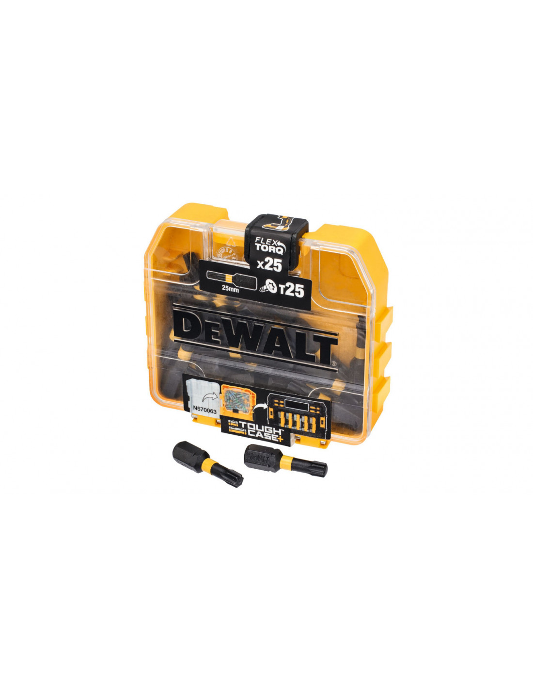Wszystkie elementy zestawu są zapakowane w mocnym opakowaniu z tworzywa "Small Bulk Storage", który wchodzi w skład nowego systemu magazynowania akcesoriów "ToughCase+" Dewalt