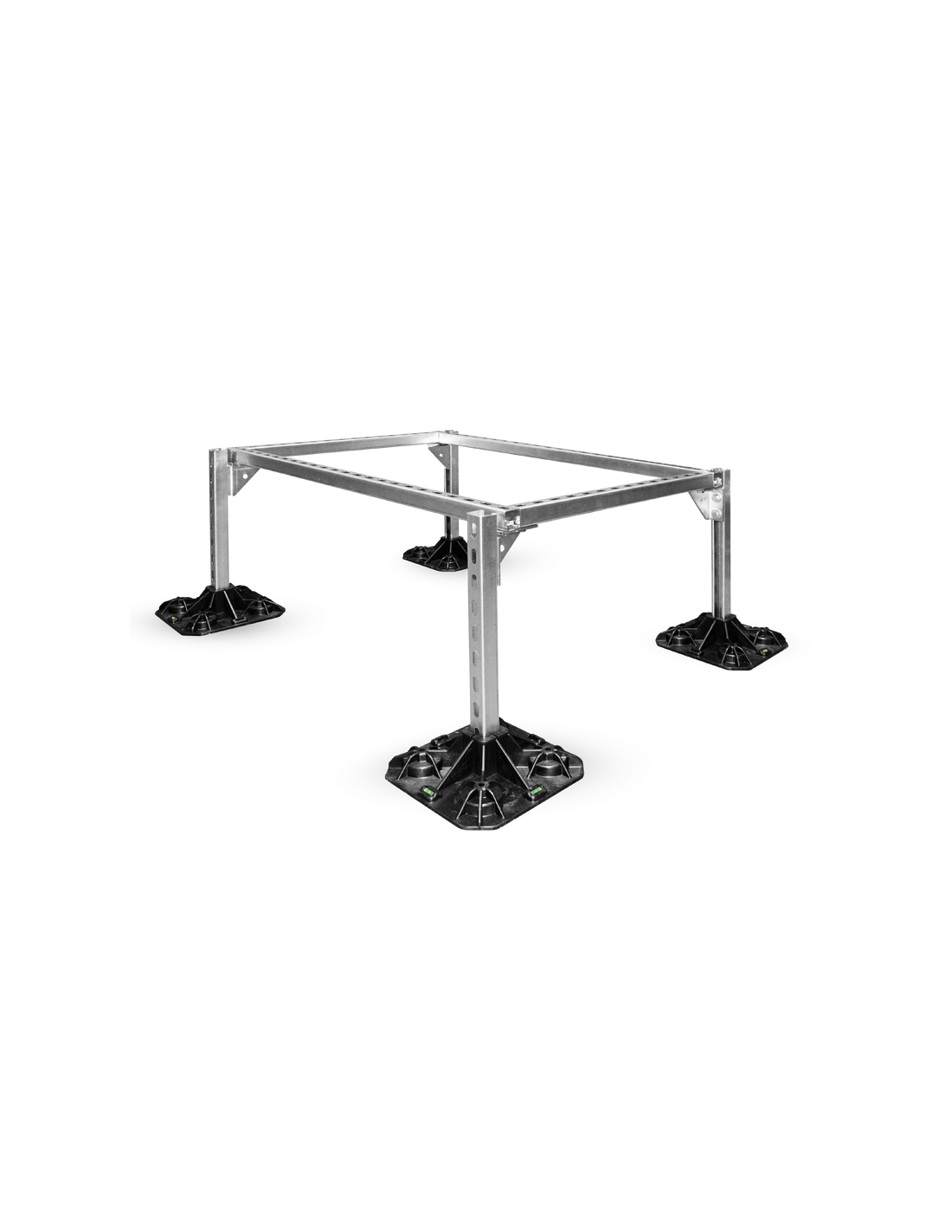 Podstawa dachowa ST-ROF-SET-4, zestaw podpór, wsporników i ram do instalacji przewodów wentylacyjnych oraz urządzeń wszelkiego typu montowanych na dachach budynków. Możliwość dowolnej kombinacji. Dodatkową zaletą jest prosty i szybki montaż. Stosowane przy montażu agregatów chłodniczych lub innych urządzeń klimatyzacyjnych. Dopuszczalne obciążenia ciągłe wynosi 480 kg.