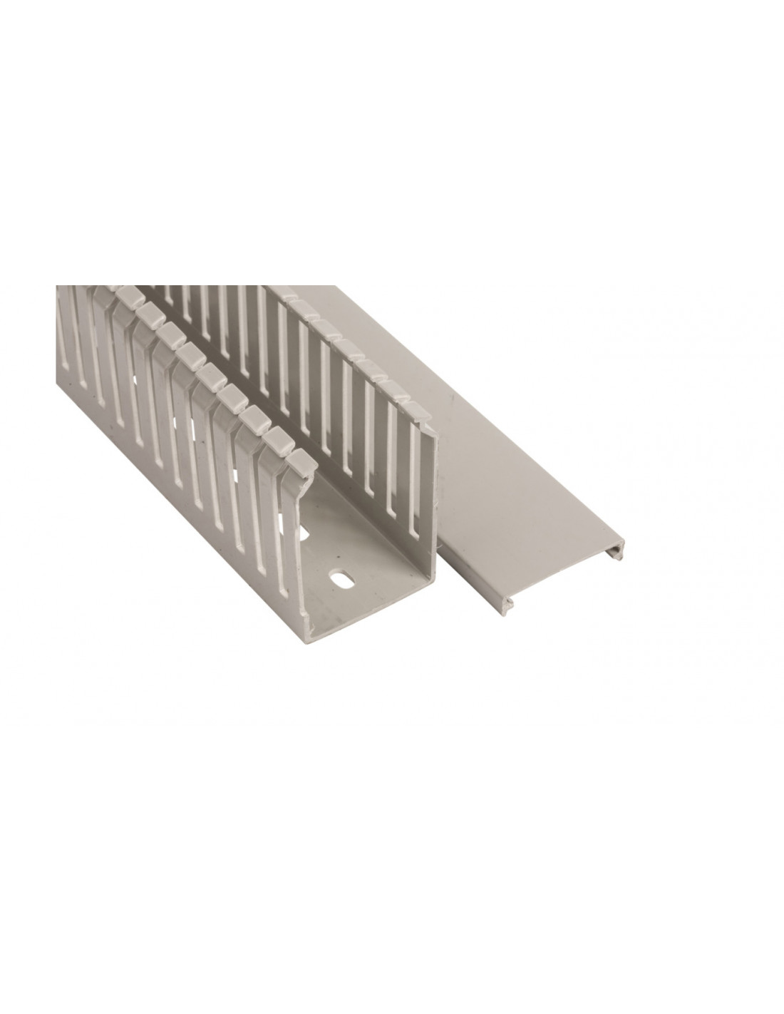 Korytko grzebieniowe 40x60/2m T1-E 01107 znane jest również pod nazwą kanału grzebieniowego. Stosowane jest do prowadzenia mniejszych rozmiarowo kabli elektrycznych. Posiada cienkie żebra, które można wyłamać i uzyskać w ten sposób mniejszą przerwę międzyżebrową. Montaż i demontaż produktu nie jest skomplikowany. W ofercie naszego sklepu dostępne jest korytko grzebieniowe 40x60/2m T1-E 01107 firmy EL-IT. Marka znana jest w branży z wysokiej jakości i wytrzymałości swoich produktów. Korytko wykonane zostało z samogasnącego PCW i dostępne jest w kolorze szarym. W zestawie z korytkiem znajduje się pokrywa mocowana na zatrzask. Produkt został wyposażony w boczne wypustki między żebrami, które tworzą zwężenie na środku otworu międzyżebrowego, co z kolei umożliwia pionowe wprowadzenie kabli i ich separację. Korytko odporne jest na niskie temperatury. Wymiary produktu są następujące: 40x60 mm. Długość korytka to 2 m. Korytko grzebieniowe 40x60/2m T1-E 01107 dostępne jest w sprzedaży wysyłkowej na sztuki. Minimalne zamówienie potrzebne do realizacji to jedna sztuka produktu.