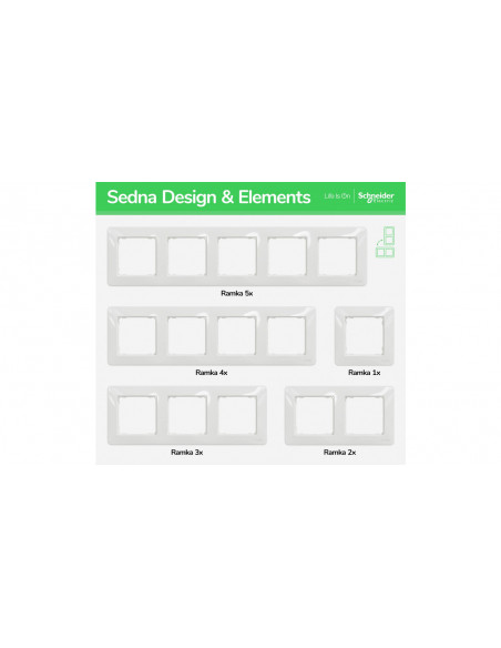 Zarówno mechanizmy Sedna Design, jak i Sedna Elements są kompatybilne ze wszystkimi ramkami z serii Sedna Design i Sedna Elements, co umożliwia stworzenie aż 91 różnych kombinacji.