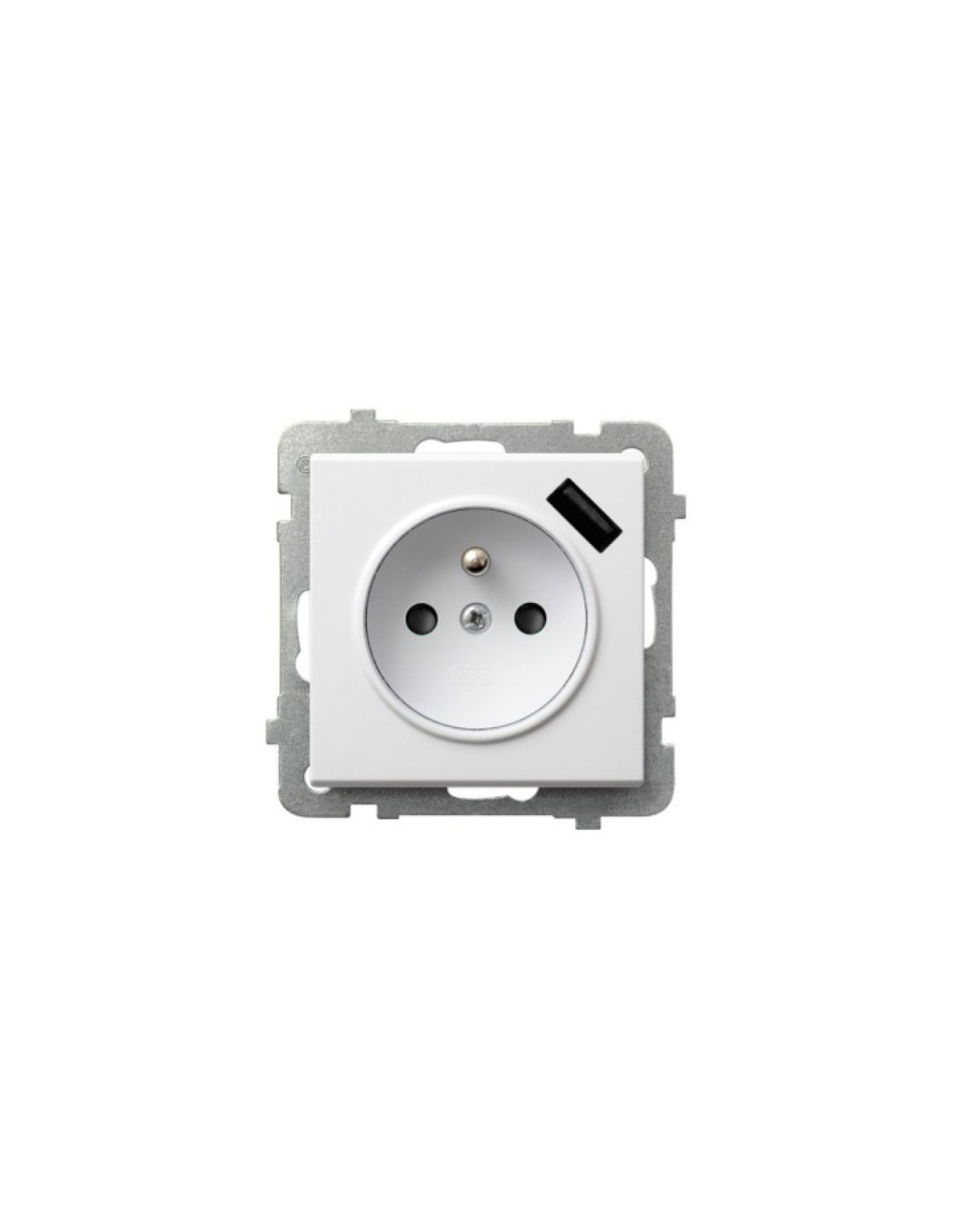 Gniazdo pojedyncze z uziemieniem z przesłonami torów prądowych, z ładowarką USB biały mat GP-1RZPUSB/m/75