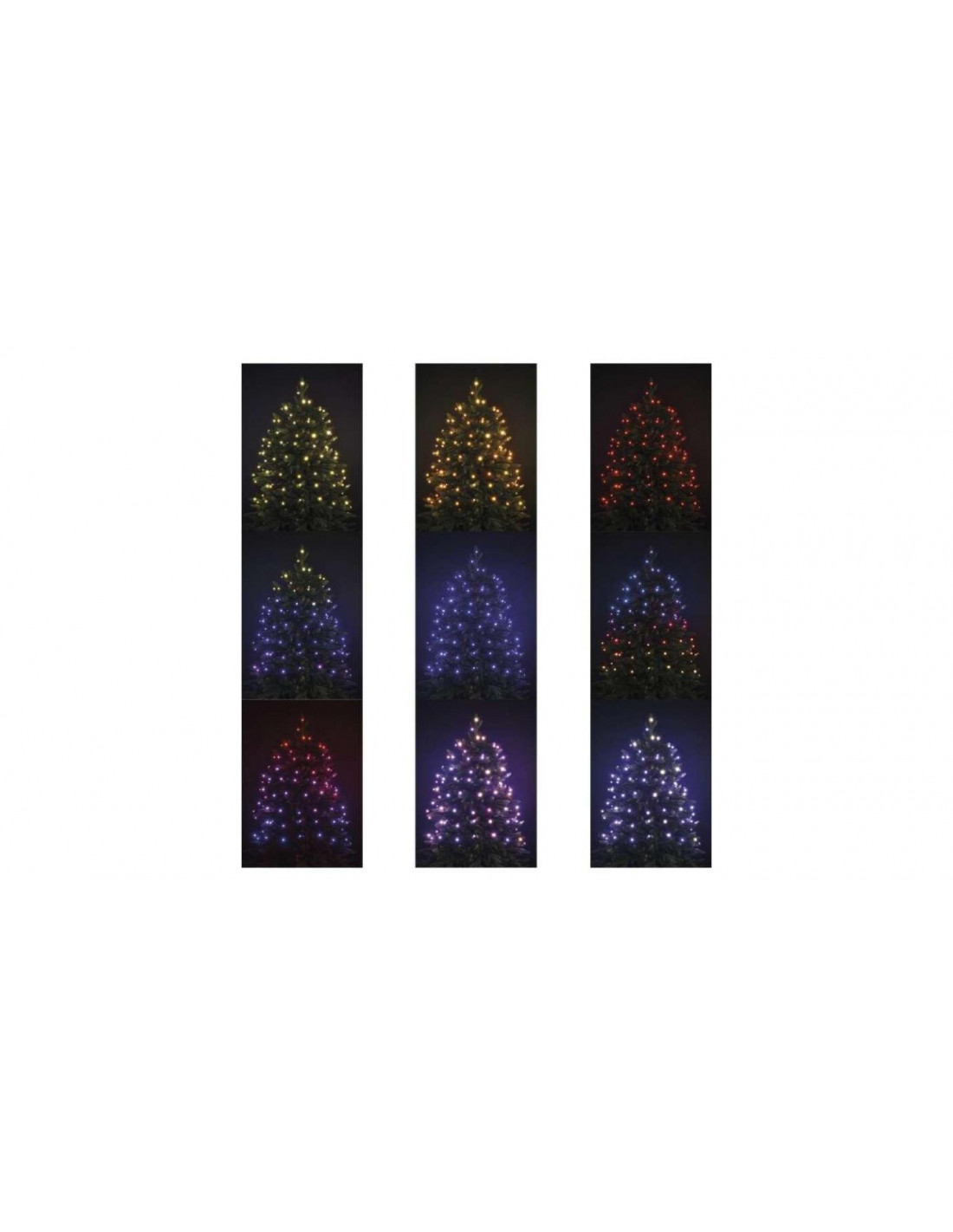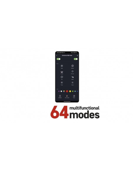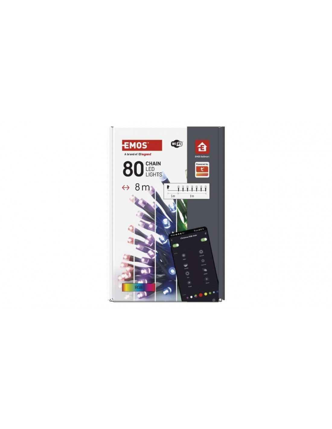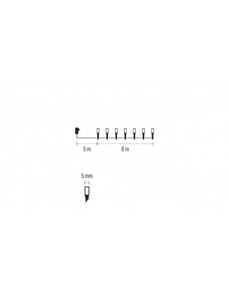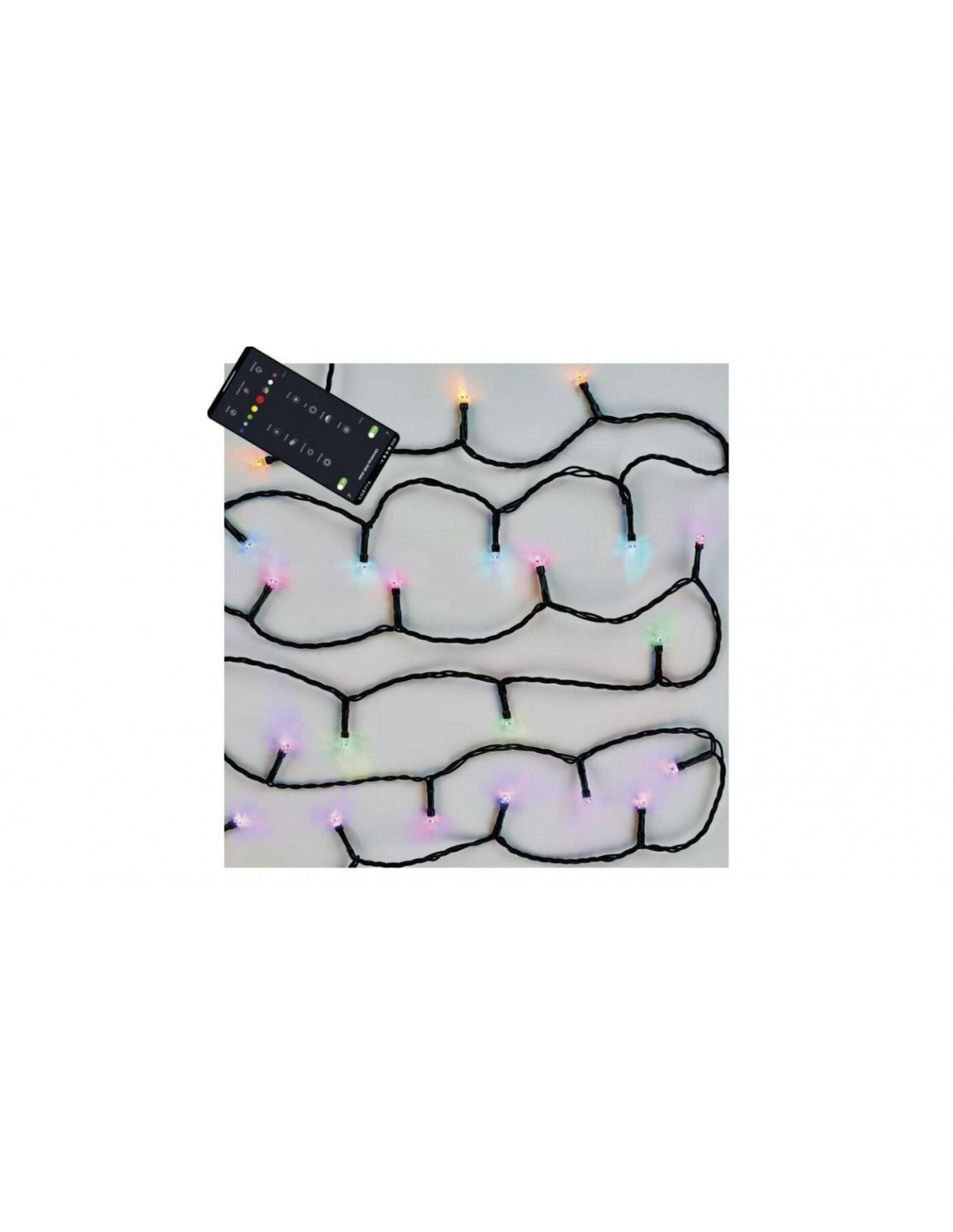 produkt: łańcuch, barwa światła: RGB, wymiary: 8 m, zastosowanie: zewnętrzne i wewnętrzne, timer, pilot zdalnego sterowania: nie, funkcje: 64 trybów (multifunkcja), typ zasilania: zasilacz sieciowy, ilość LED: 80, długość przewodu: 5 m, do wysokości choinki: nie dotyczy, kolor przewodów: czarny, moc: 8,4 W, napięcie wejściowe: 230 V AC, napięcie wyjściowe: 6 V DC, możliwość podłączenia: nie, stopień ochrony: IP44, żywotność: 10 000 godzin, materiał: PVC, okres gwarancyjny: 2 lata, opakowanie: 1 szt., pudełko