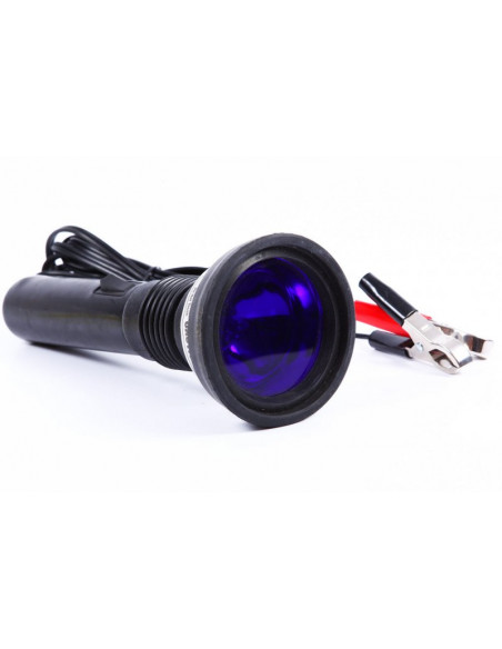 Niewielkich rozmiarów lampa świecąca intensywnym strumieniem światła. Posiada przewód zasilający z klamrami do podłączenia do akumulatora samochodowego 12 V DC.