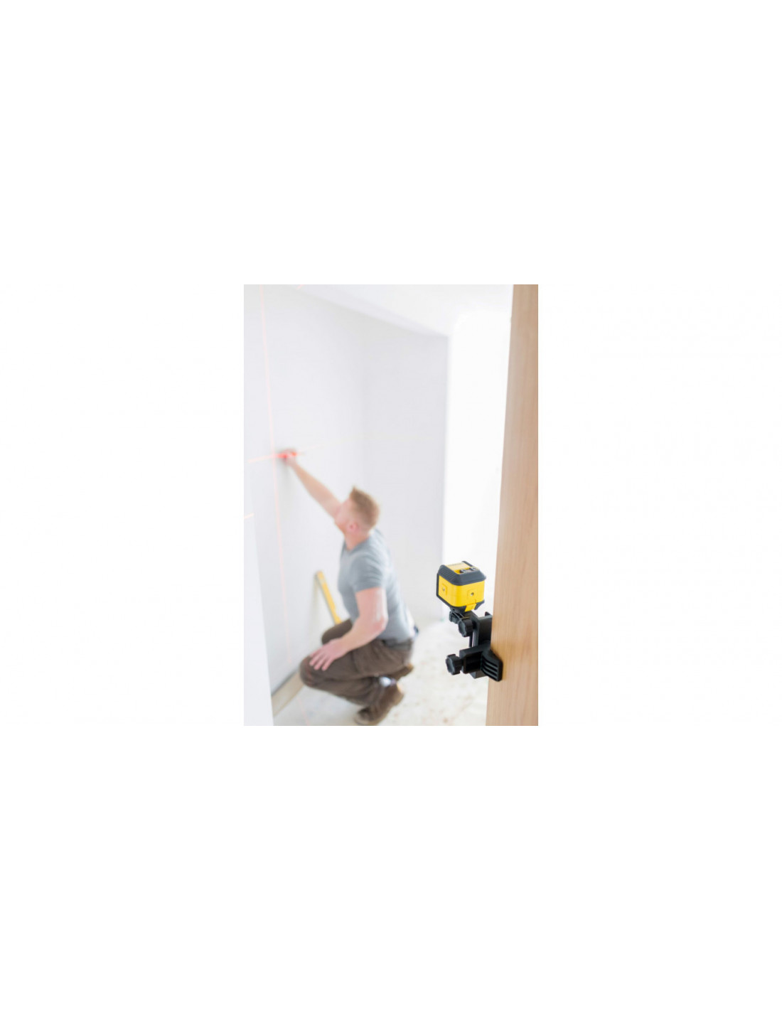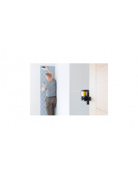 Poziomica emituje samopoziomującą krzyżową wiązkę lasera (linie poziome i pionowe) na ścianie, w odległości nawet do 12 metrów