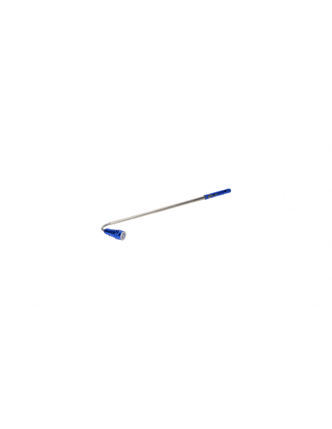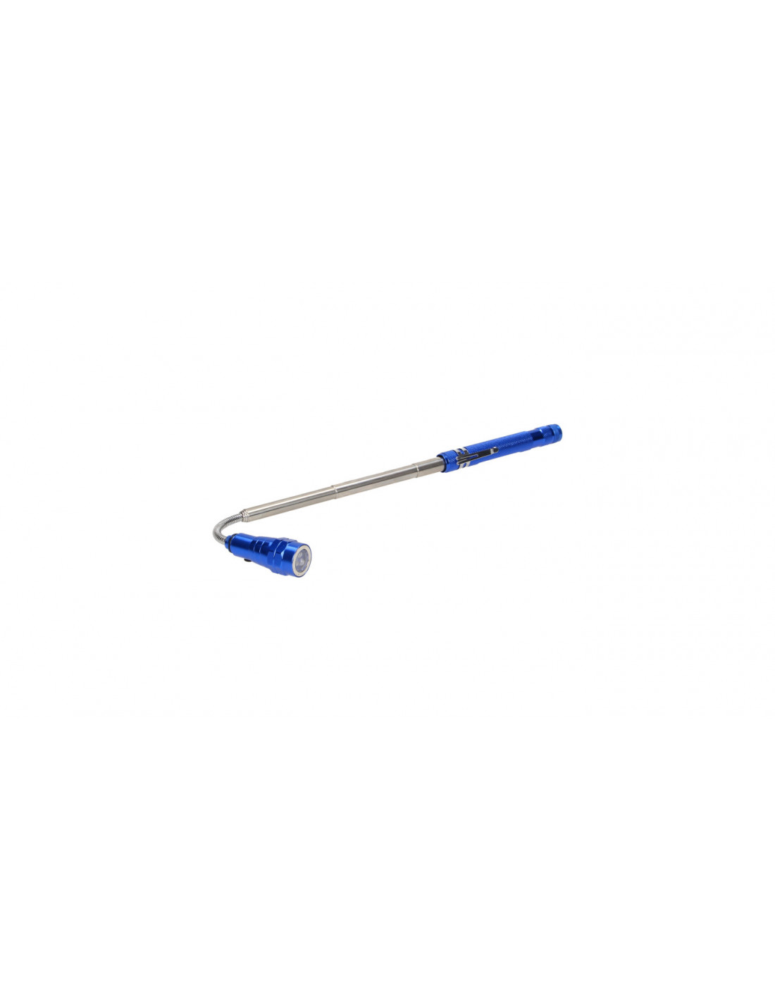 Wyjątkowo praktyczne urządzenie, które łączy w sobie latarkę i magnes, jest wręcz niezbędne w domu, garażu czy warsztacie. Źródło światła w latarce stanowią 3 mocne diody LED, które generują silne i jasne światło. Latarka daje dużo więcej światła w porównaniu do tradycyjnych a przy tym jest dużo bardziej oszczędna. Zasilana jest 4 bateriami LR44, dołączonymi do zestawu. Świeci w zasięgu do 150m. Latarka ma mocną, aluminiową konstrukcję, która zapewnia jej odporność na uderzenia i wstrząsy. Głowica latarki wygina się, a jej teleskopowe ramię można wysunąć w zakresie 17 – 57 cm. W dolnej części latarki wbudowano magnes, który możemy wykorzystać do podnoszenia śrubek i nakrętek w szczelinach lub innych trudno dostępnych miejscach