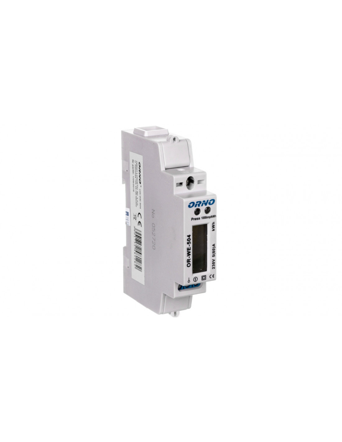 Licznik 1-fazowy OR-WE-504 to urządzenie, które służy do dokonywania wskazań w jednostkach metrycznych. Stosowany jest do bezpośredniego pomiaru mocy czynnej w układzie 1-fazowym i rejestrowania pobranej energii. Umożliwia także zdalny odczyt rejestrów grupy wskaźników poprzez przewodową sieć standardu RS-485, która obsługuje protokół Modbus. Specjalny układ elektroniczny urządzenia pod wpływem prądu i napięcia generuje impulsy w proporcjonalnej ilości do pobieranej energii.