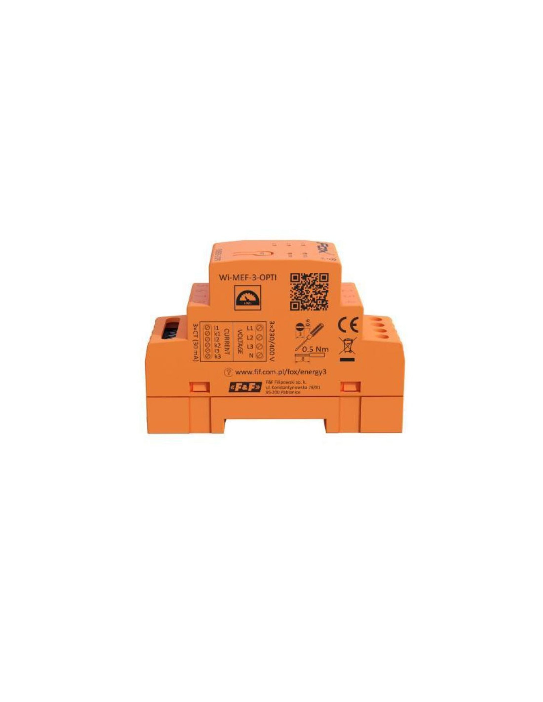ENERGY 3-OPTI-200 - bezprzewodowy (działa w sieci wi-fi) licznik zużycia energii elektrycznej. Rejestruje zużycie energii elektrycznej oraz monitoruje istotne parametry sieci - napięcie, prąd, moc, zużycie energii. Dostęp do danych możliwy jest bezpośrednio z poziomu aplikacji lub przez przeglądarkę internetową. Komunikacja odbywa się bezprzowodowo przez sieć wi-fi i chmurę F&F.