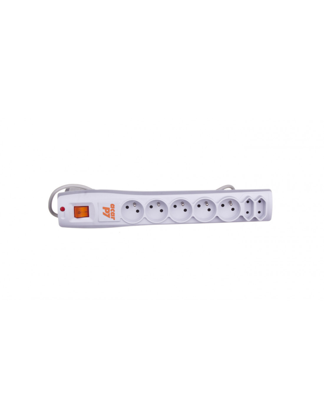 acar P7 to model z siedmioma zabezpieczonymi gniazdami sieciowymi 230V, w tym 5 z uziemieniem i 2 płaskimi bez uziemienia. Dodatkowo jest wyposażony w system porządkowania przewodów pozwalający na wygodną i estetyczną organizację przewodów zasilających, biegnących z urządzenia do odbiorników. Dzięki niemu unikniemy plątaniny kabli pod biurkiem, jednocześnie zabezpieczając przed przepięciami wrażliwe urządzenia elektryczne. acar P7 jest wyposażony w automatyczny bezpiecznik, gwarantujący prostotę i skuteczność działania.