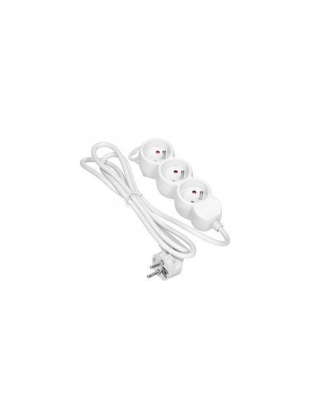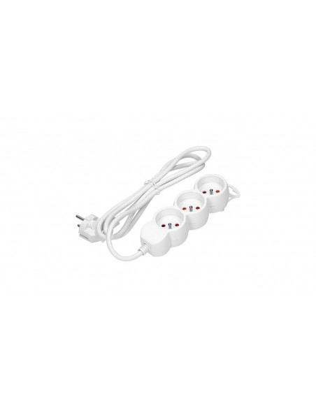 Przedłużacz 3-krotny 2P+Z, 3m H05VV-F 3x1.0mm2, Imax=10A, koloru białego.
